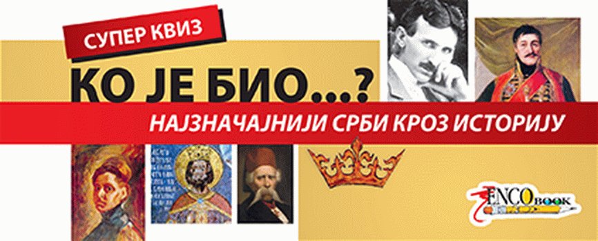 Kviz o najznamenitijim Srbima kroz istoriju. Knjiga je namenjena deci uzrasta od 9 do 13 godina, ali i starijima koje zanima ova tema.