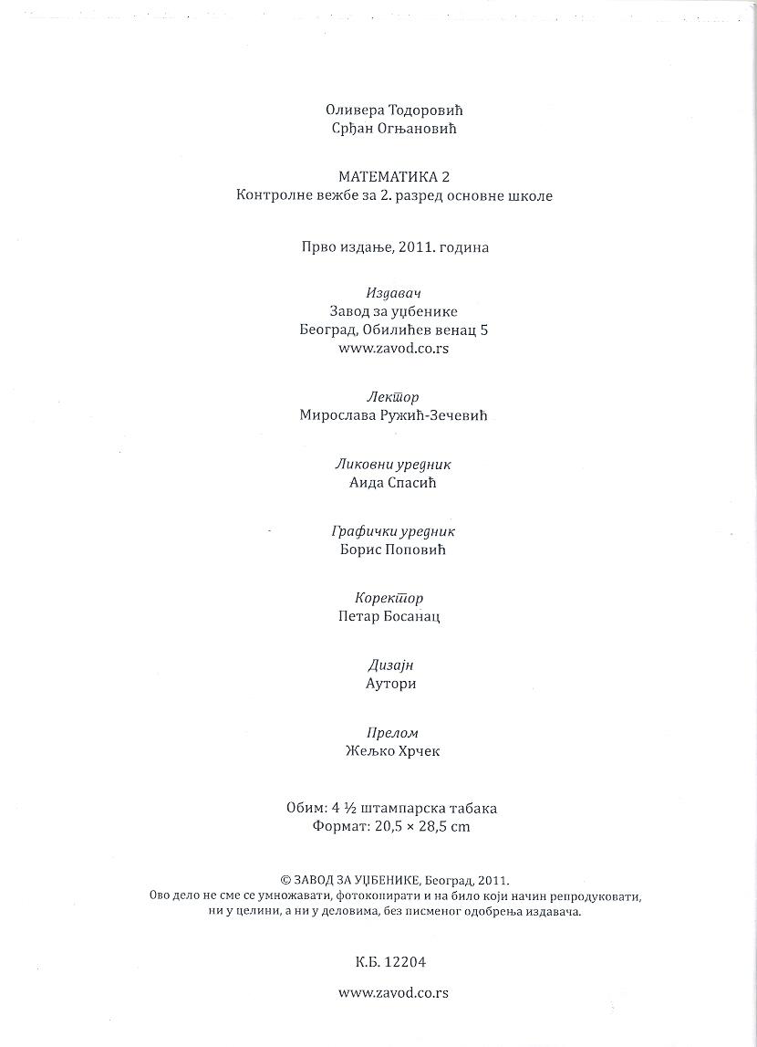 Zavodove kontrolne vežbe iz matematike za drugi razred osnovne škole.