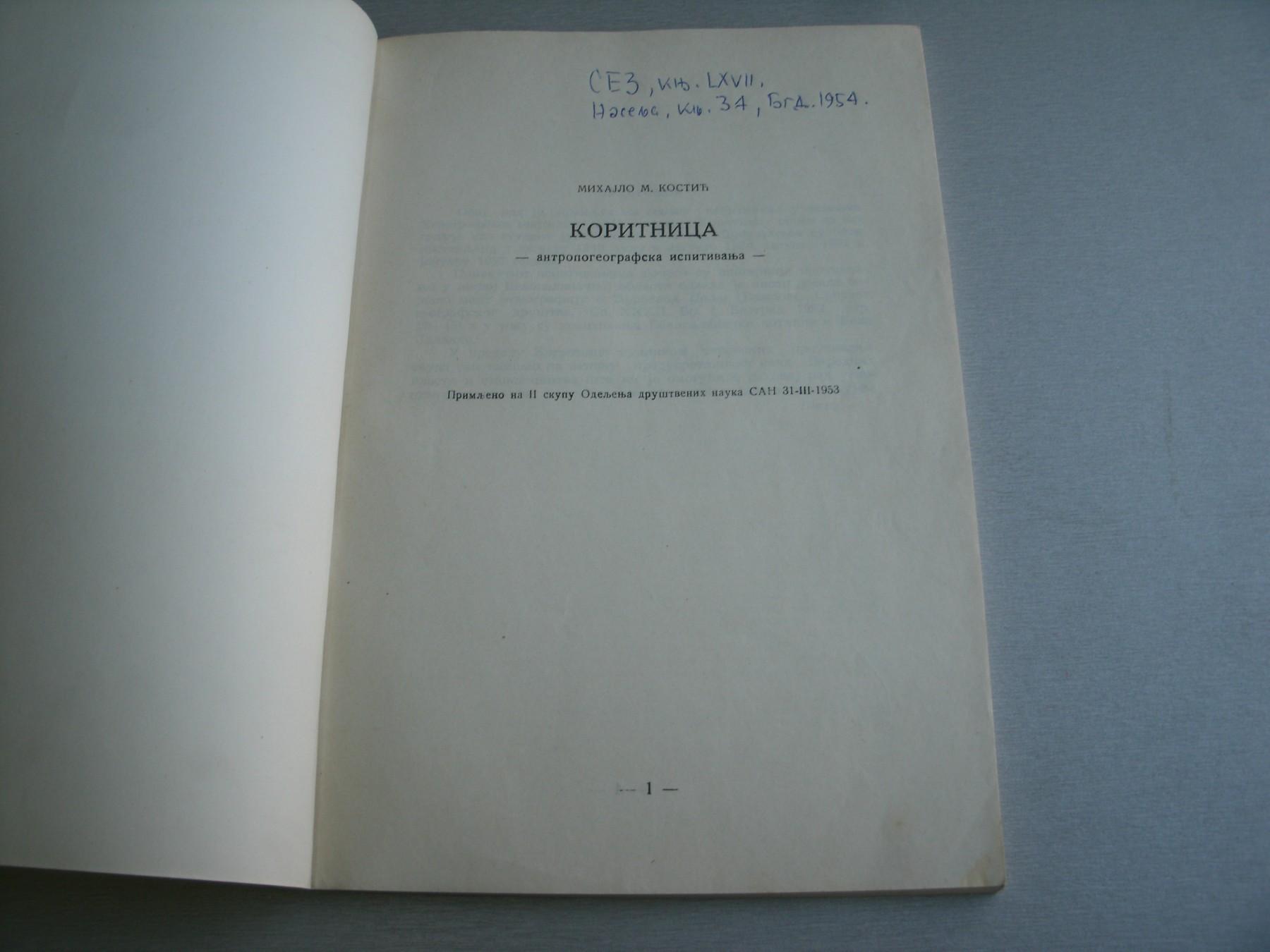105 str. + XII tabli ilustracija + mapa Koritnice