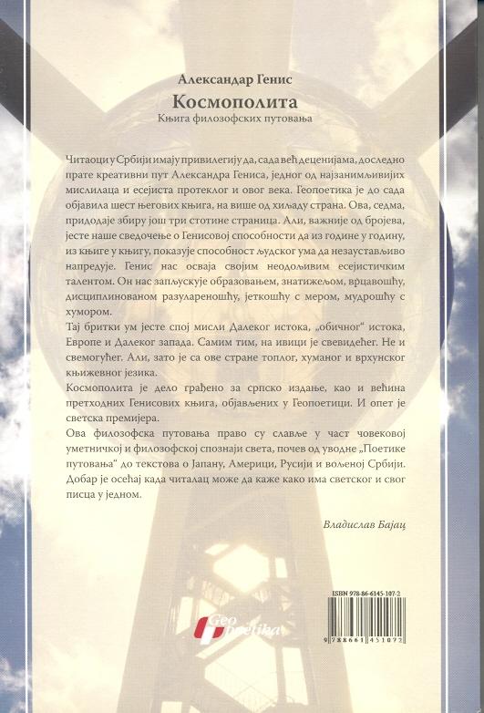 Kosmopolita je delo građeno za srpsko izdanje, kao i većina prethodnih Genisovih knjiga, objavljenih u Geopoetici. I opet je svetska premijera.
