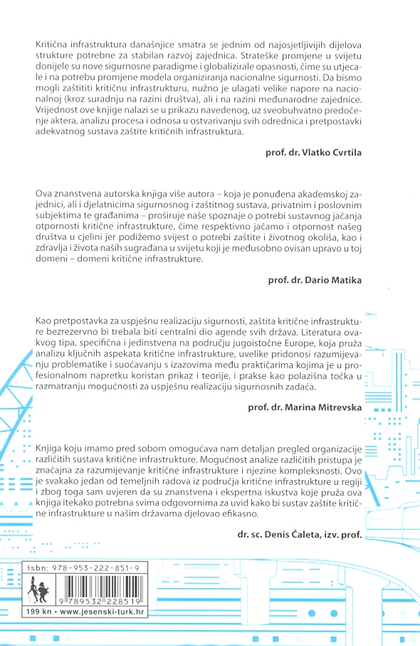 Ova knjiga predstavlja osobito relevantno djelo za današnjicu jer daje odgovor na specifičan zahtjev znanja. Kako u Hrvatskoj pristupiti pitanjima zaštite kritične infrastrukture? S kime bih trebao razgovarati? Tko su dionici sustava i zašto? Koja je definicija zaštite kritične infrastrukture u Hrvatskoj? Je li koncept zaštite kritične infrastrukture prihvaćen u regiji jugoistočne Europe? Sve su to pitanja dionik i akademska zajednica željeli riješiti i razaznati kako bi se potaknula suradnja, razmjena informacija, javna rasprava, regionalni odgovor i istraživanje. Dosadašnja saznanja o nacionalnim okvirima, zajedno s analizom njihovog utjecaja i nadolazeće evolucije, neki su od ključnih čimbenika koji bi mogli potaknuti kvalificirane i učinkovite rezultate.