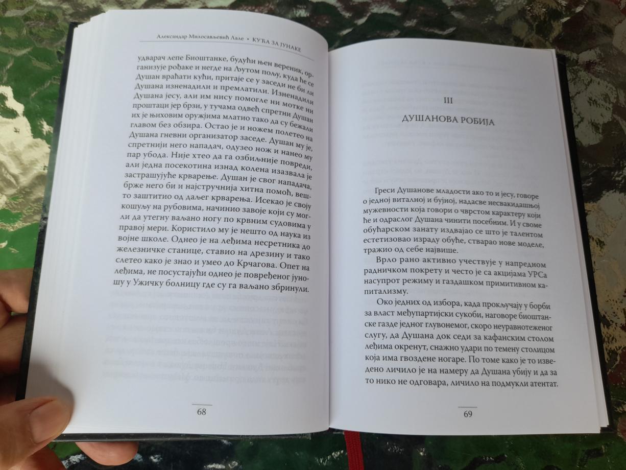 -Drugi postulati su postulati ovog vremena i ja tugujem zbog toga. Ovaj roman je kao opomena mladima koji ga budu čitali, da ima nešto bolje i lepše što može da ukrasi čovekov život, a to je junaštvo radi određenih ideala. Put čovekov do svog nestajanja, apsurdno jeste, ali to nam je svima sudbina, jeste težnja nekom idealu. Ideali generacije kojoj ja pripadam jesu spremnost za junačko delo, kaže Aleksandar Lale Milosavljević.