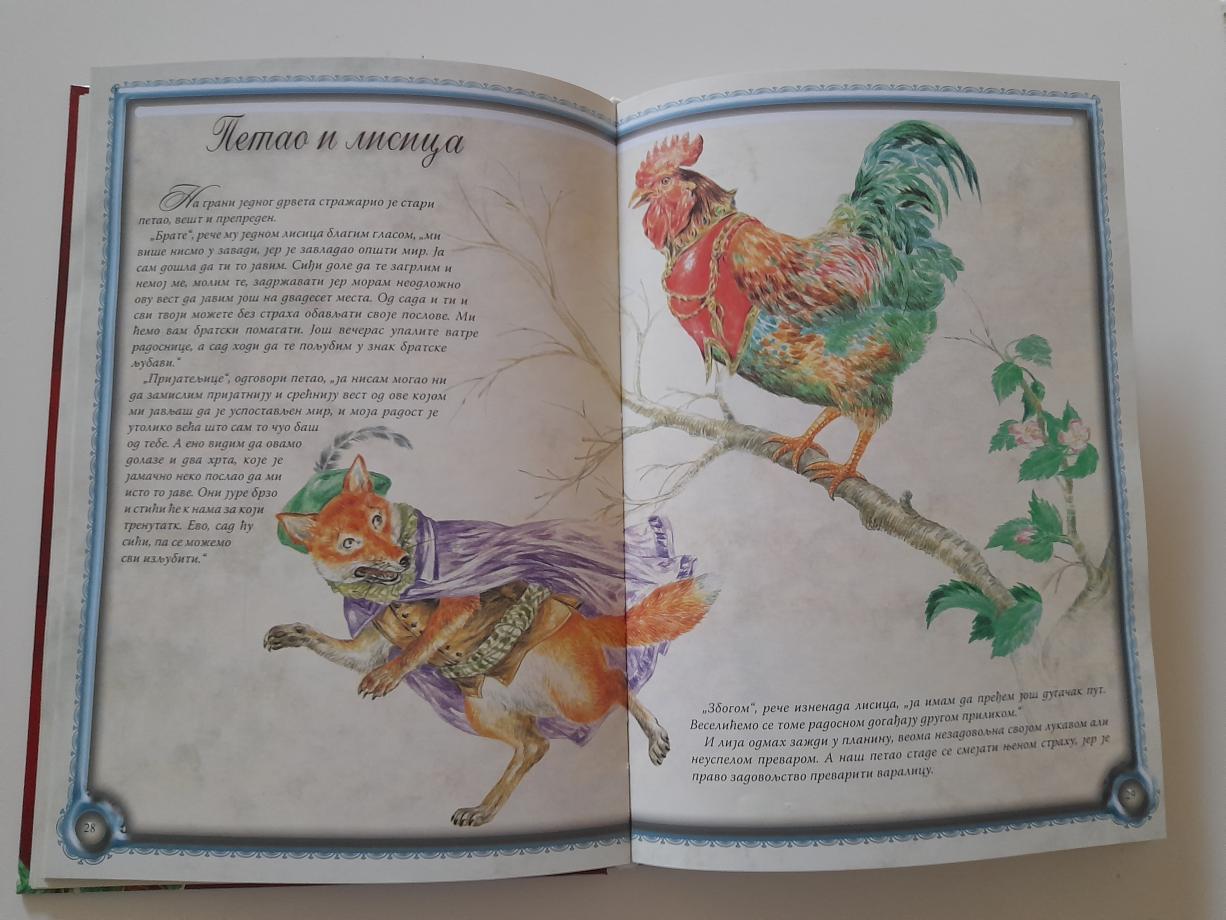 Klasične, neponovljive priče, ličnosti i ambijent ponovo su tu: sve je toliko živo da nam se, dok čitamo, čini da se pred našim očima razmiče zavesa neke pozornice na koju izlaze likovi koje govore, misle i osećaju. Tu je lav, večiti kralj; magarac koji ne može bez gospodara; trapavi i priglupi medved, plašljivi zec i prepredena lisica... Iako je Lafontenovo vreme odavno prošlo, određene karaktere i ličnosti možemo sresti i danas, pa je to štivo i dalje aktuelno i može mnogo da pruži mladim čitaocima.