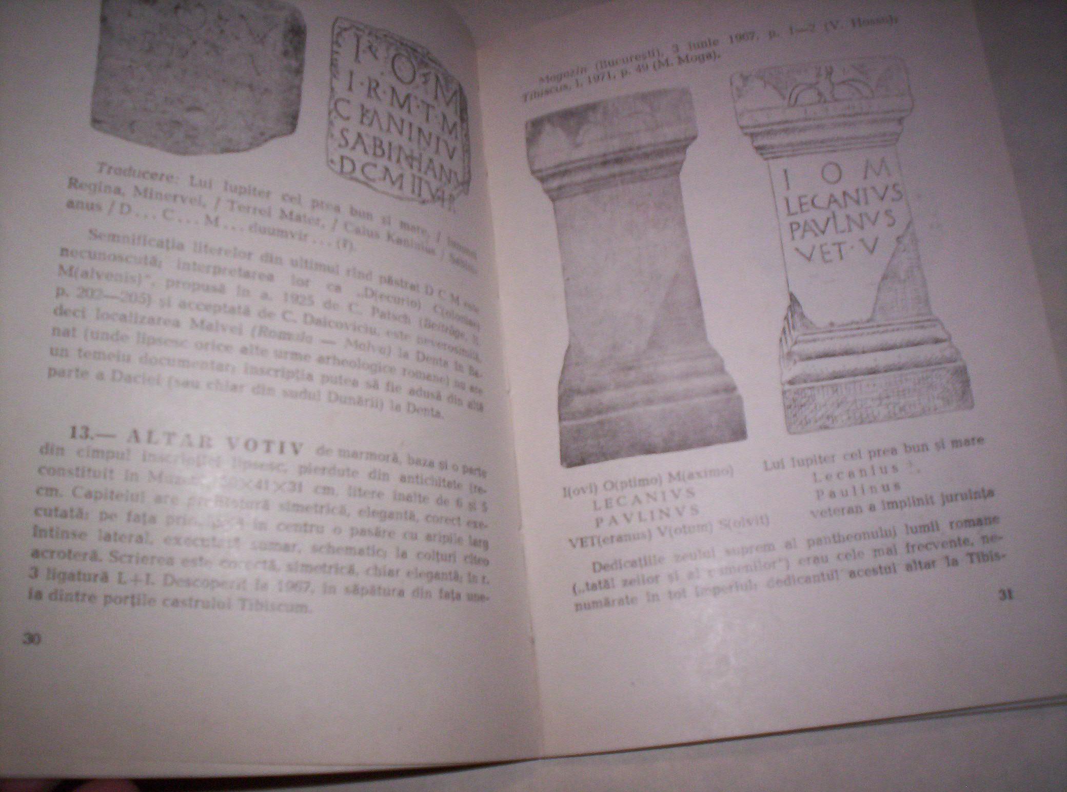 Marius Moga-Ion I. Russu: LAPIDARUL MUZEULUI BANATATULUI (Monumente epigrafice Romane), Muzeul Banatului, Timisoara, 1974, format 14,5 x 20,5 cm, strana 103, na rumunskom jeziku, broširan povez, ilustrovano crtežima i crno-belim fotografijama. Epigrafski natpisi Rimljana na monumentnim kamenim spomenicima-sarkofazima koji se čuvaju u Muzeju Banata u Temišvaru, popis, prevodi i tumačenja. Retko u ponudi. Plaćanje unapred. Ne korespondiram SMS porukama. Ne prodajem knjige kupcima sa Kosova i ne šaljem u inostranstvo. Kupac plaća poštarinu.