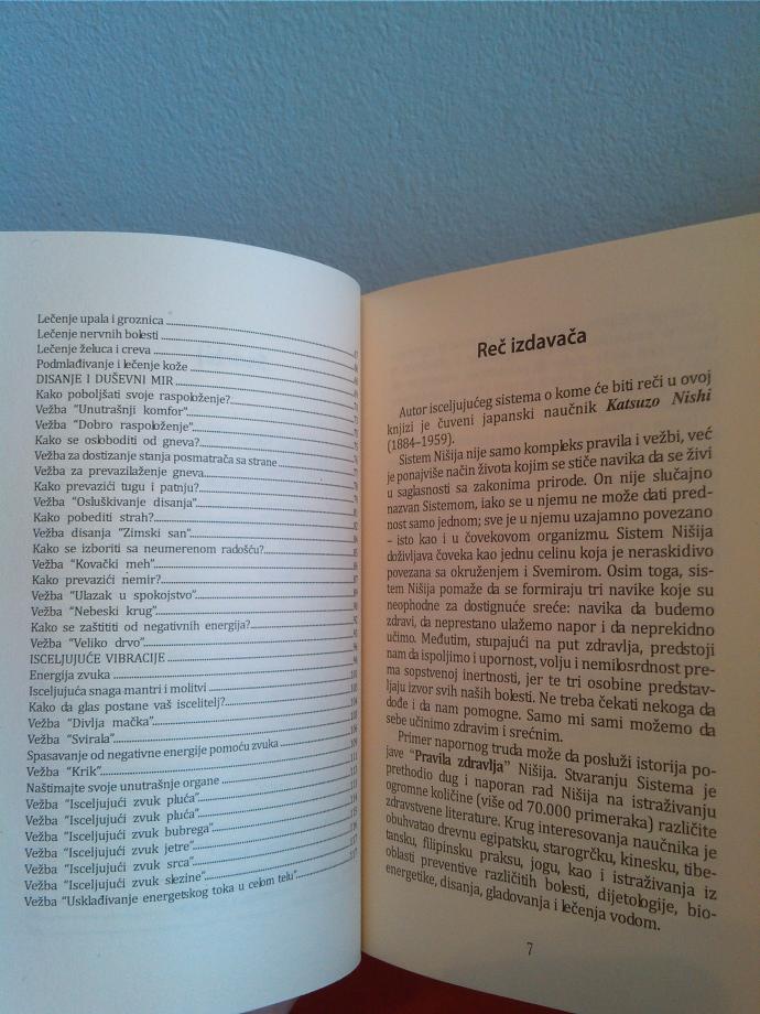 Ovaj izuzetan sistem vežbi za energetsko disanje uspešno otklanja sve fizičke, psihičke i energetske probleme. Sistem Nišija je prošao proveru u praksi zahvaljujući čemu su hiljade ljudi postali zdraviji, izlečili se od teških bolesti. Sistem Nišija omogućava da se produži mladost, da se naslađujemo životom, pomaže čoveku da izdrži u teškim uslovima, da se izbori sa stresom i bolestima. Ona uči čoveka da prati prirodne zakone života i prirode, a za uzvrat daruje najvrednije - zdravlje.