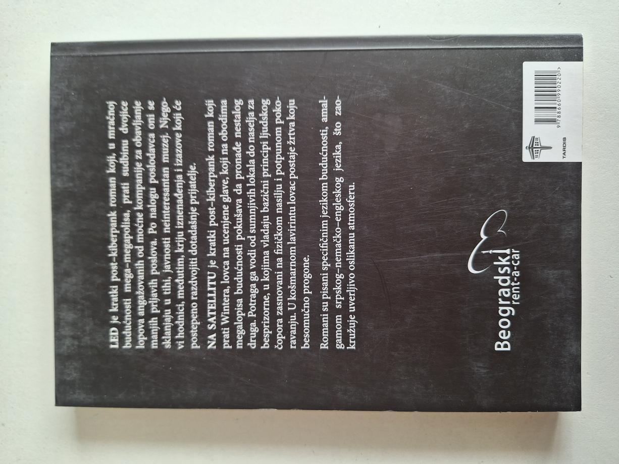 LED je kratki post-kiberpank roman kojí, u mračnoj budučnosti mega-megapolisa, prati sudbinu dvojice lopova angażovanih od moćne kompanije za obavljanje manjih prljavih poslova, Po nalogu poslodavca oni se sklanjaju u tihi, javnosti neinteresantan muzej. Njegovi hodnici, međutim, kriju iznenađenja i izazove koji će postepeno razdvojiti dotadašnje prijatelje. NA SATELLITU je kratki post-kiberpank roman kojí prati Wintera, lovca na ucenjene glave, kojí na obodima megalopisa budućnosti pokušava da pronađe nestalog druga. Potraga ga vodi od sumnjivih lokala do naselja za besprizorne, u kojima vladaju bazični principi ljudskog čopora zasnovani na fizičkom nasilju i potpunom pokoravanju. U košmarnom lavirintu lovac postaje žrtva koju besomučno progone. Romani su pisani specifičnim jezikom budućnosti, amalgamom srpskog-nemačko-engleskog jezika, Sto zao-
