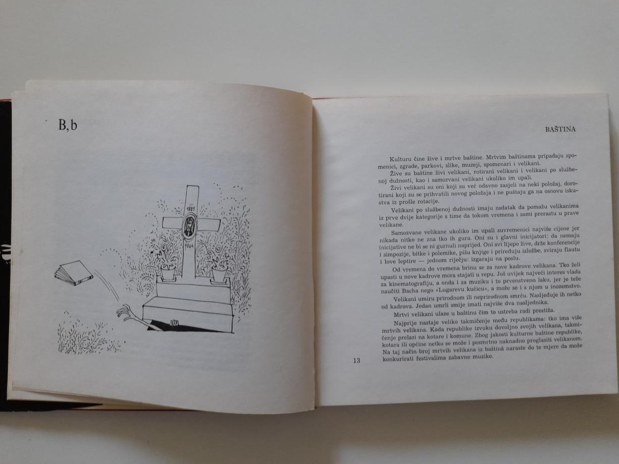 Leksikon primjenjene kulture, tandema Mirko Trišler (piše) i Nedeljko Dragić (crta). Za autora koji će na osobeni, ali intrigantni, duhoviti, au svakom slučaju i smisleni način `obraditi` osamdesetak pojmova `primjenjene kulture`, u rasponu od avangarde do baštine, prego križaljke, dječje poezije i prijevoda, naposlijetku do šunda i umjetnika i televizije `izabran` je Mirko Trišler - Trifun (1921.-1995.) jedan od najvećih humorista tog doba u Hrvatskoh, ali i u cijeloj Jugoslaviji. Likovni umjetnik koji će pak na svoj karakterističan, ali vizualno sojmljiv i `nepredvidiv` način (nema `ponavljanja`) crtežom, dočarati Trifunova abecedarij je bio, naravno, Nedeljko Dragić (r. 1936.)