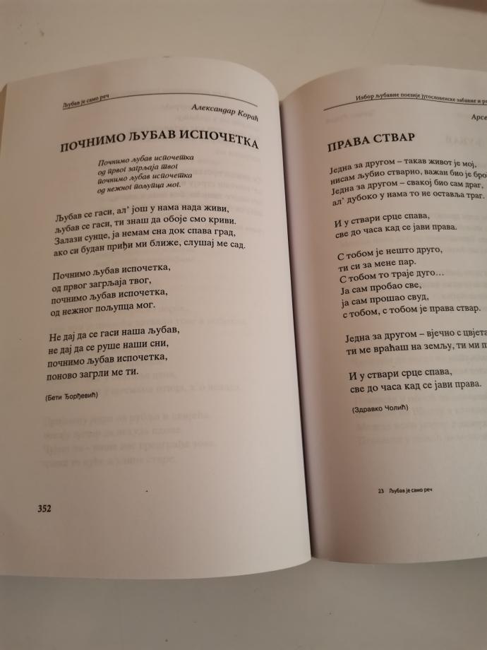 Izdavac Beogradska knjiga Beograd, 2009. Mek povez, cirilica. Knjiga sadrzi najlepse ljubavne pesme jugoslovenske zabavne i rok muzike. Knjiga sadrzi oko 350 tekstova pesama.