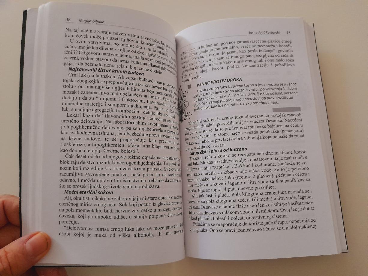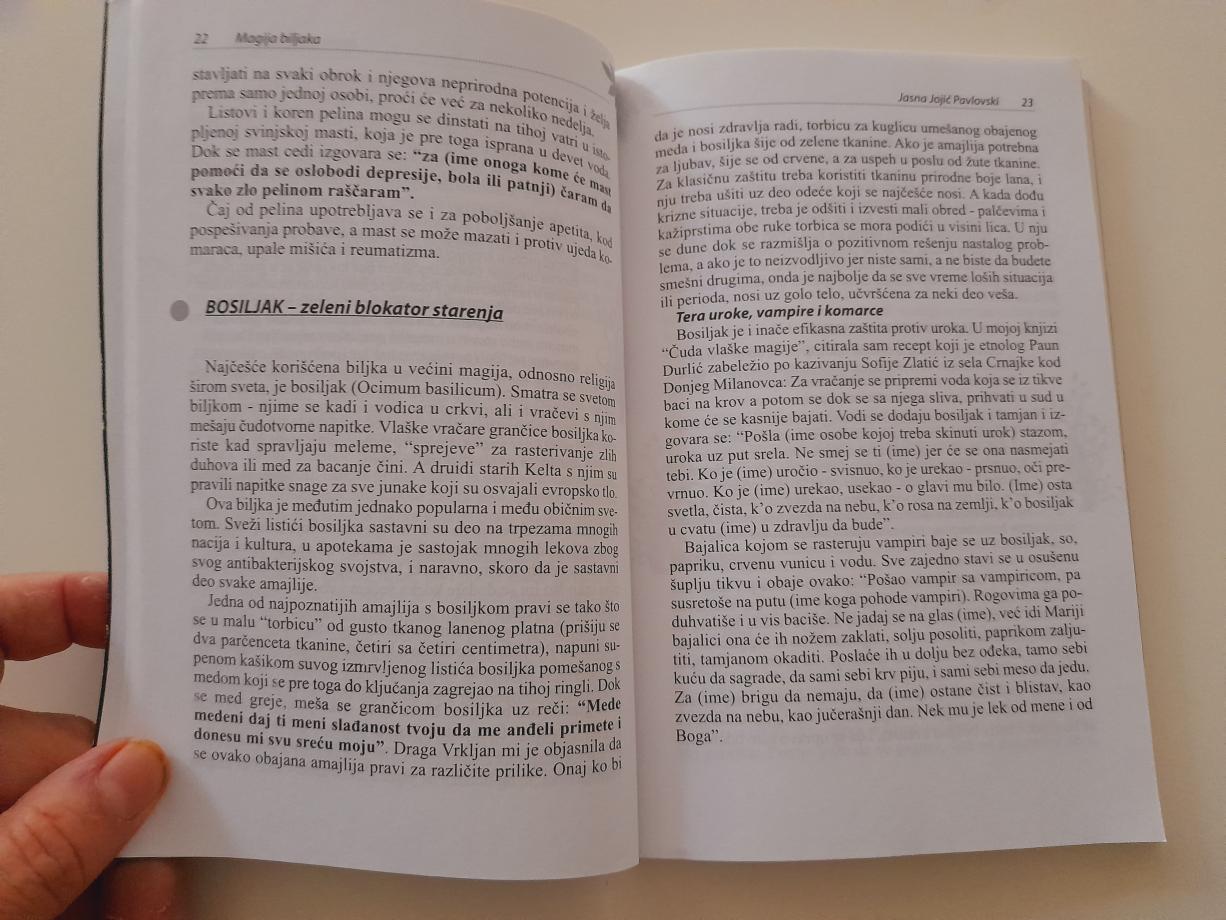 U knjizi “Magija biljaka - i lek i amajlija” Jasne Jojić su 33 priče o 33 biljke - legende i narodna verovanja o njima, recepti o njihovoj zdravstvenoj i religijskoj upotrebi. Autorka nam otkriva kako da napravimo meleme kojima možemo da preduhitrimo i suzbijemo mnoge bolesti. Bez tajni opisuje kako su naši preci sami izvodili rituale koji poboljšavaju koncentraciju, intuiciju, samopouzdanje i ulivaju optimizam u mračnu svakodnevicu. Prenosi nam i drevna znanja kako su u Vavilonu, starom Egiptu, Grčkoj i Rimu, u katoličkim i pravoslavnim manastirima, u tajnim društvima alhemičara,… od delova pojedinih biljaka, mudraci pravili amajlije i toteme koji su ih štitili od zla i donosili im sreću. Knjiga na 149 strane nudi mnogo istorijskih, etnoloških, antropoloških i fitoterapijskih činjenica, i, saznanja iz današnjih naučnih laboratorija.