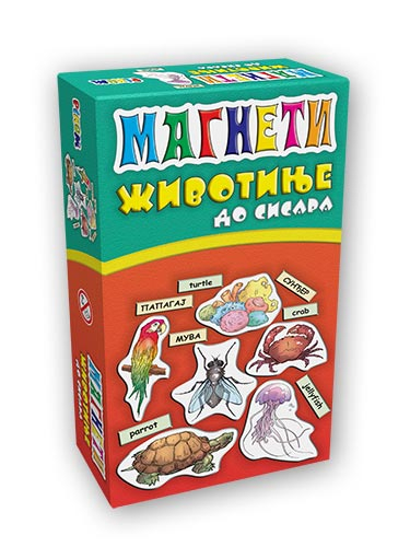 Komplet se sastoji od sedamdeset i dva magneta na kojima se nalaze ilustracije životinja. Nazivi životinja ispisani su na srpskom i engleskom jeziku. Ovo je savršen način da najmlađi usvoje mnoga korisna znanja o životinjskom svetu, kao i da obogate svoj rečnik engleskog jezika.