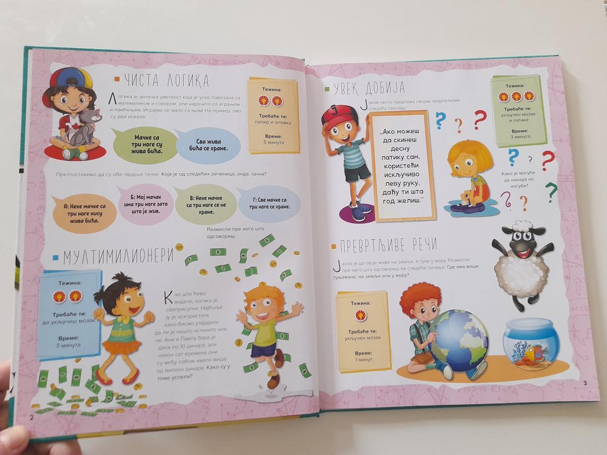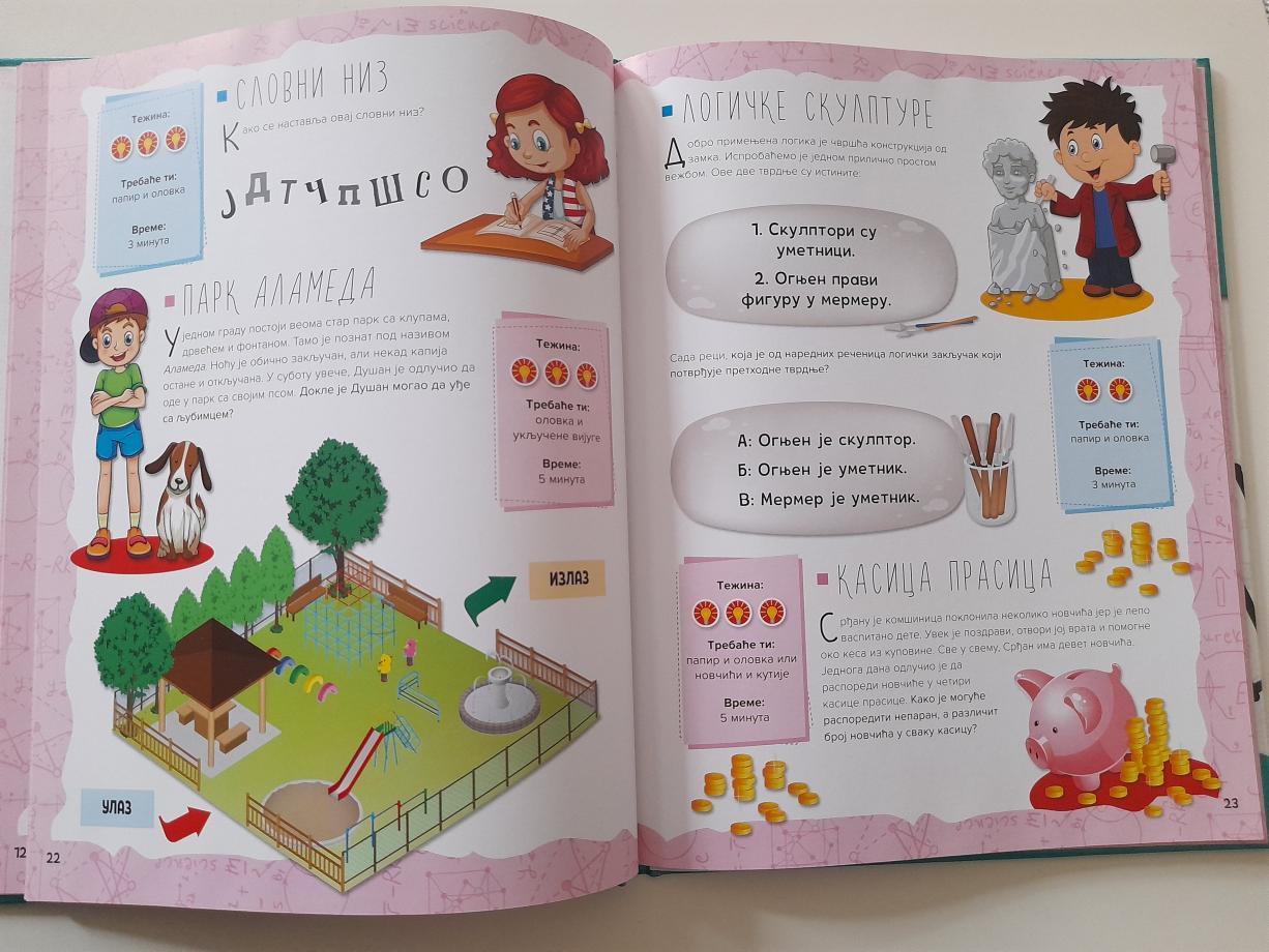Proveri i usavrši svoje logičko razmišljanje kroz raznovrsne vežbe iz ove zbirke: između ostalog, tu su slagalice, zagonetke, mozgalice i pogađalice.