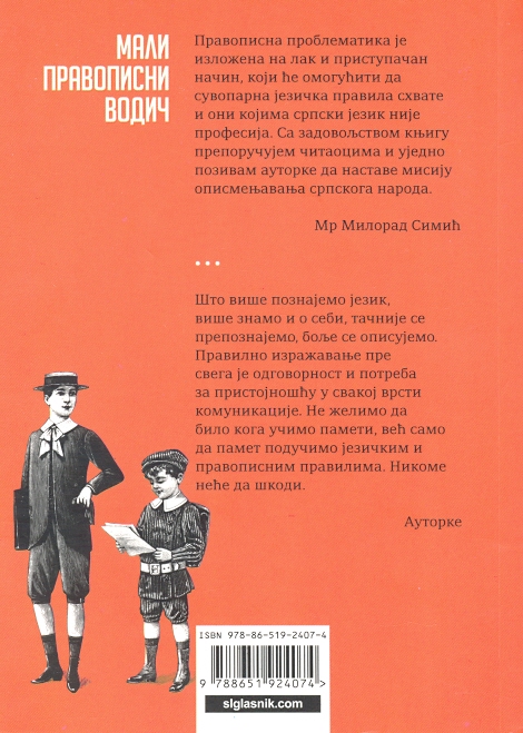 "Pravopisna problematika je izložena na lak i pristupačan način, koji će omogućiti da suvoparna jezička pravila shvate i oni kojima srpski jezik nije profesija. Sa zadovoljstvom knjigu preporučujem čitaocima i ujedno pozivam autorke da nastave misiju opismenjavanja srpskoga naroda."