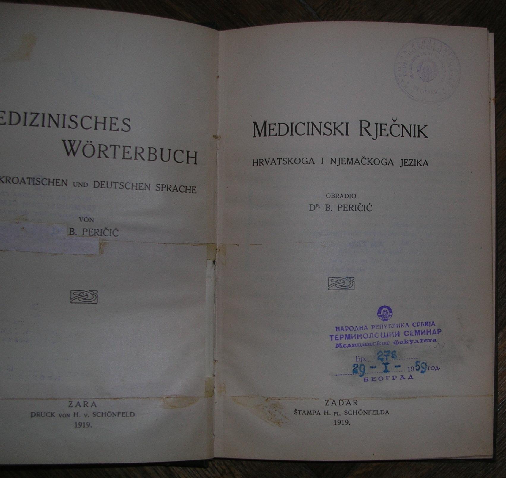 Medicinski rječnik, hrvatskog i njemačkog jezika