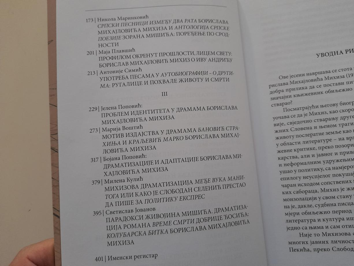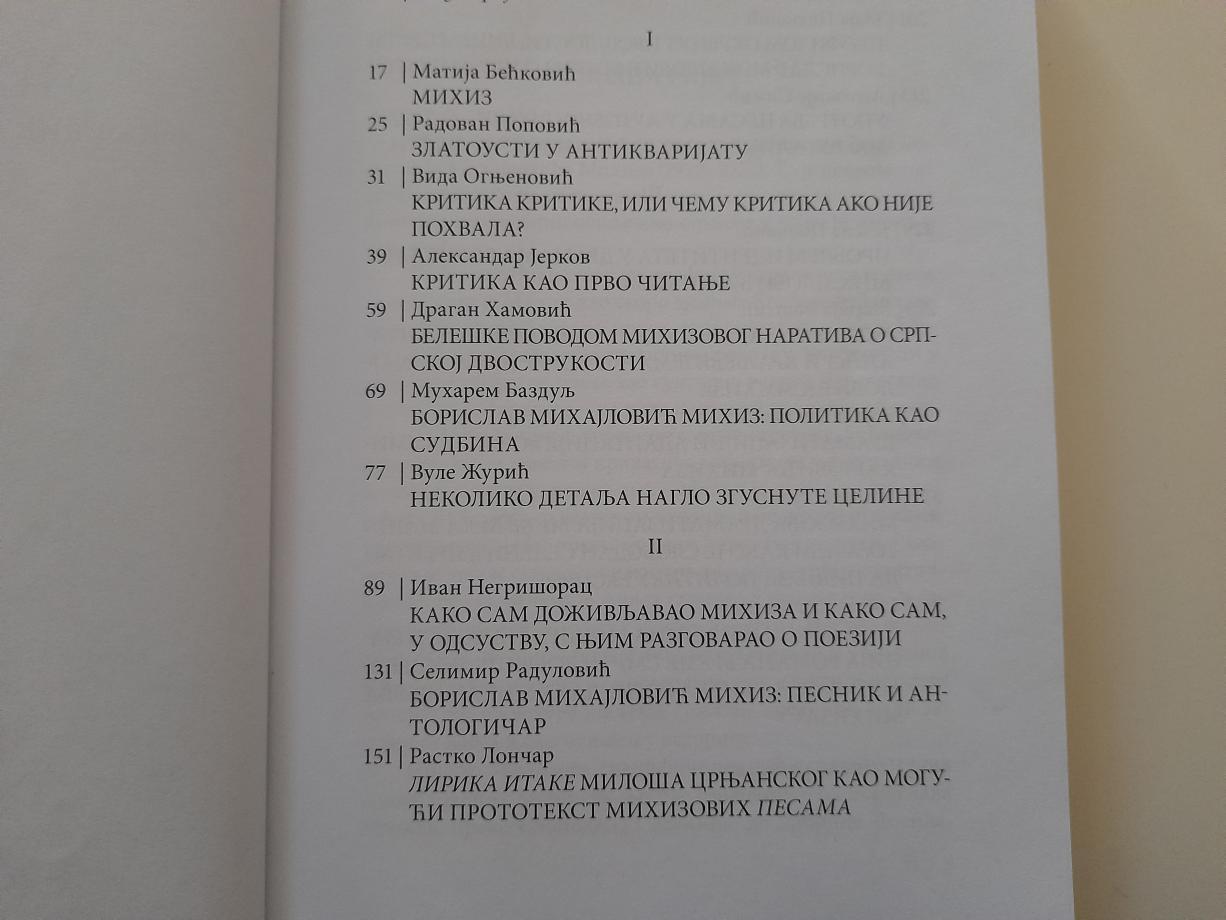 Ovakvom publikacijom je obeležena stogodišnjica piščevog rođenja, ali je istovremeno postavljen kamen temeljac novoustanovljenih „Mihizovih susreta“, na kojima će se ići u svim onim istraživačkim pravcima proishodećim iz Mihizovog literarnog nasleđa. U zborniku su objavljeni radovi Matije Bećkovića, Radovana Popovića, Vide Ognjenović, Aleksandra Jerkova, Dragana Hamovića, Muharema Bazdulja, Vuleta Žurića, Ivana Negrišorca, Selimira Radulovića, Rastka Lončara, Nikole Marinkovića, Maje Plavšić, Antonija Simića, Jelene Popović, Marije Voštić, Bojane Popović, Milene Kulić i Svetislava Jovanova.
