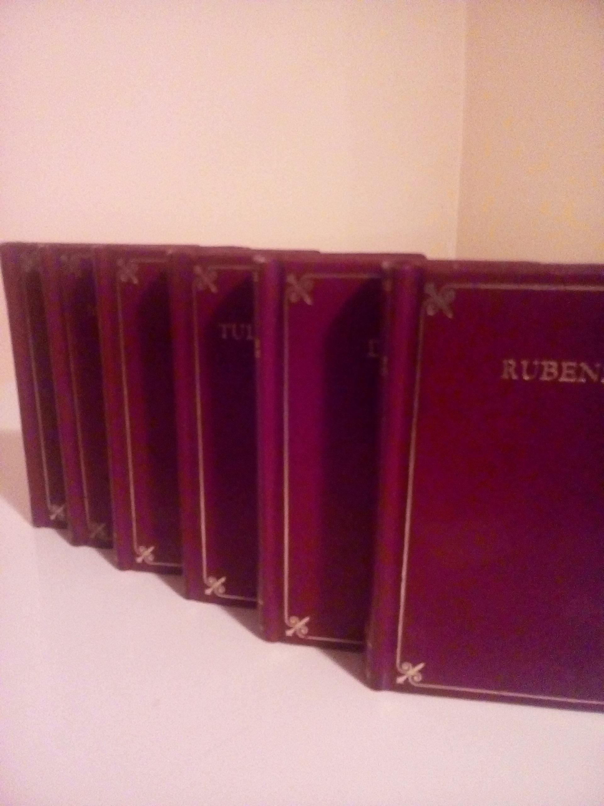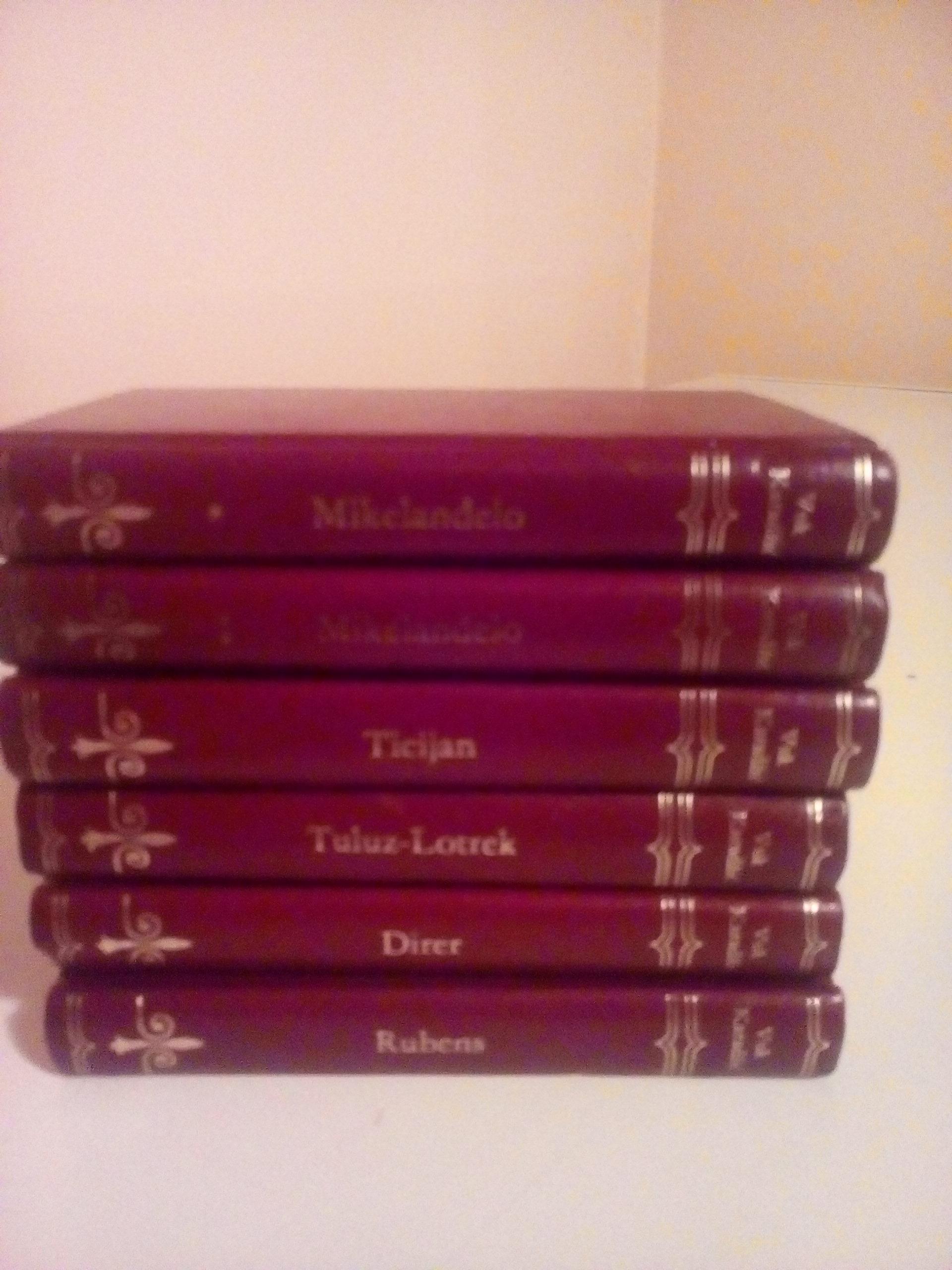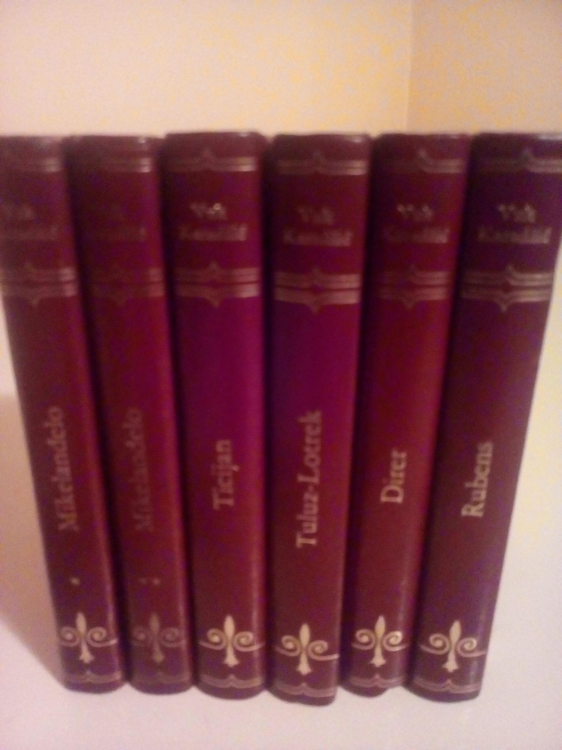 Izdavac Vuk Karadzic Beograd, 1977. tvrd kozni povez sa zlatotiskom. Ukupno 6 knjiga o vrhunskim umetnicima. Knjige su specificne po svojim dimenzijama 107 X 70 milimetara. Knjige obiluju fotografijama dela ovih umetnika.