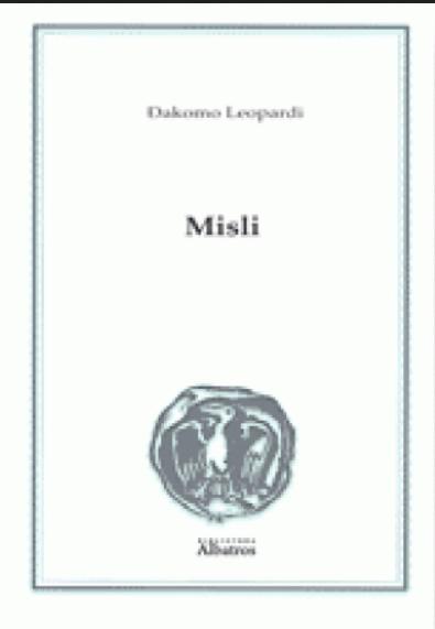 ’’Leopardijeve Misli pojavile su se po prvi put po smrti piščevoj 1845, premda ih je on lično izabrao i sredio. Pesnik ih pominje pred samu smrt, "kao neobjavljenu knjigu Misli o naravima ljudskim i ponašanju ljudi u Društvu". Mnogi od ovih fragmenata pisac je uzeo iz svoje veoma bogate radionice - Zibaldona, dok su drugi u potpunosti novi. Za razliku od neposrednih misaonih izliva u Zibaldonu - velikom dnevniku piščevih intimnih i svakodnevnih preokupacija, napisanih i zapisanih ad hoc, punih filoloških i semanitčkih primesa, ove Misli su stilistički doteran rad, doveden do svirepe čistote kao epigrafi ispod životnih slika u stalnome pokretu. Na stranicama ovih zapisa sa ljudske pozornice, oseća se po rečima Serdja Solmija, izvestan "ledeni" karakter, uz istovremeno jogunastu preciznost u otkrivanju mehanizama koji upravljaju društvenim odnosima, i samom svesnošću ljudi, ovim stvorenjima "bednim po nužnosti, i rešenim da veruju kako su to zahvaljujući slučaju". Pored veliko lirskog pesnika beznadja i basnoslovnog detinjstva, nalazimo i jednog Leopardija samišljenika La Rošfukoa i La Brijera u gnostičkom misaonom nimbusu, gde nam se prikazuje sa takvom jasnošću kao nikada ranije.’’