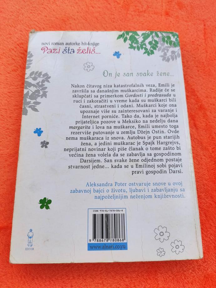 On je san svake žene...Nakon čitavog niza katastrofalnih veza, Emili Olbrajt je završila sa današnjim muškarcima. Radije će se sklupčati sa primerkom Gordosti i predrasuda u rukama i zakoračiti u vreme kada su muškarci bili časni, plemeniti i nežni. Muškarci koje ona upoznaje više su zainteresovani za varanje i porniće. I zato, kada je najbolja prijateljica pozove u Meksiko na nedelju dana margarita i lova na muškarce, Emili umesto toga rezerviše putovanje u zemlju Džejn Ostin. Ovde nema muškaraca iz snova. Autobus je pun starijih žena, a jedini muškarac je Spajk Hargrejvs, neprijatni novinar koji piše članak o tome zašto bi većina žena volela da izlazi sa gospodinom Darsijem. Međutim, san svake žene odjednom će postati stvarnost jedne kada se u Emilinoj sobi pojavi pravi gospodin Darsi...Aleksandra Poter ostvaruje snove u ovoj zabavnoj bajci o životu, ljubavi i zabavljanju sa najpoželjnijim neženjom književnosti.