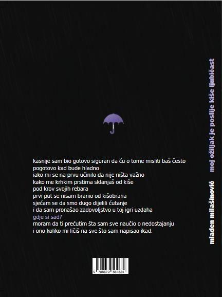 Zbirka pesama Moj ožiljak je poslije kiše ljubičast prva je knjiga mladog pisca Mladena Milašinovića iz Mrkonjić Grada kojom je predstavio sebe javnosti.