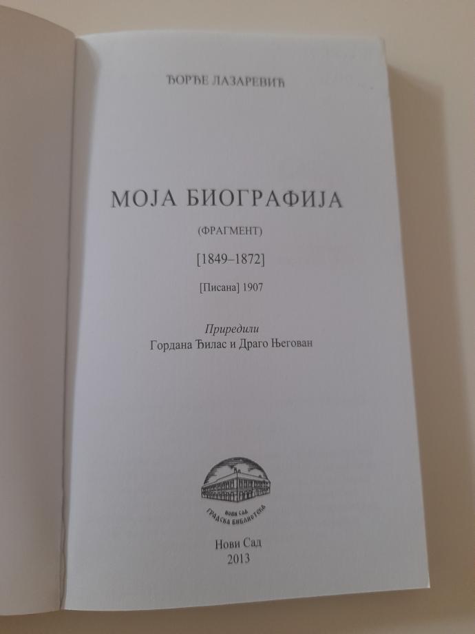 „ Moja biografija” je fragment autobiografije, koju je Lazarević napisao 1907. godine, a obuhvata period od njegovog rođenja 1849. u Novom Sadu pa do studija medicine u Beču 1872. godine.