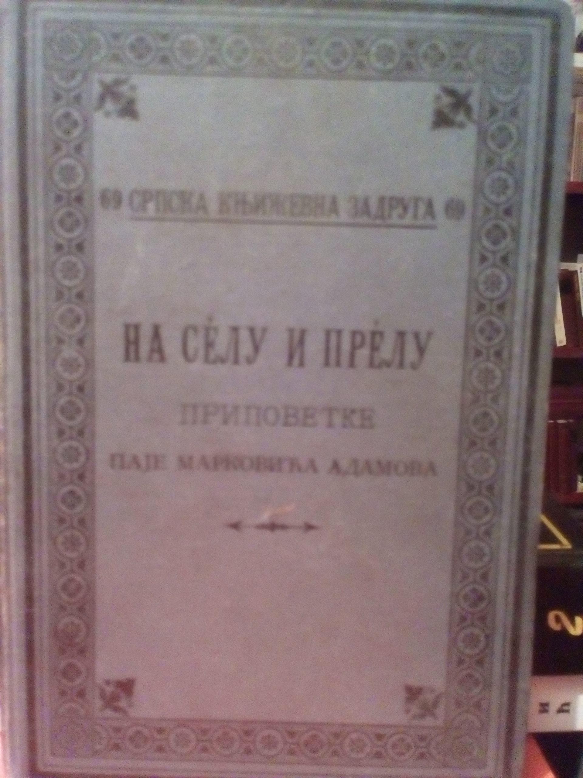 Izdavac SKZ 1901, tvrd povez, cirilica. Knjiga pripovedaka Na selu i prelu je stampana u Srpskoj Manastirskoj stampariji u Sremskim Karlovcima.