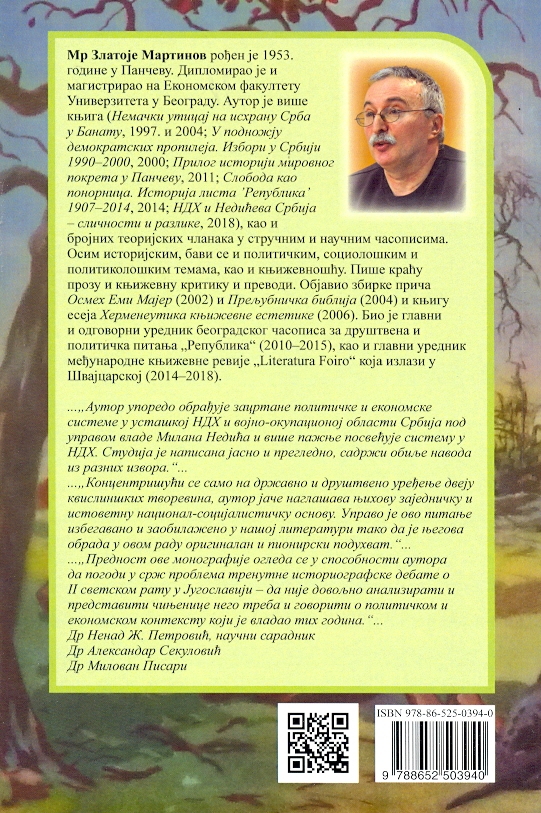 "Prednost ove monografije ogleda se u sposobnosti autora da pogodi u srž problema trenutne istoriografske debate o Drugom svetskom ratu u Jugoslaviji - da nije dovoljno analizirati i predstaviti činjenice, nego treba i govoriti o političkom i ekonomskom kontekstu, koji je vladao tih godina."