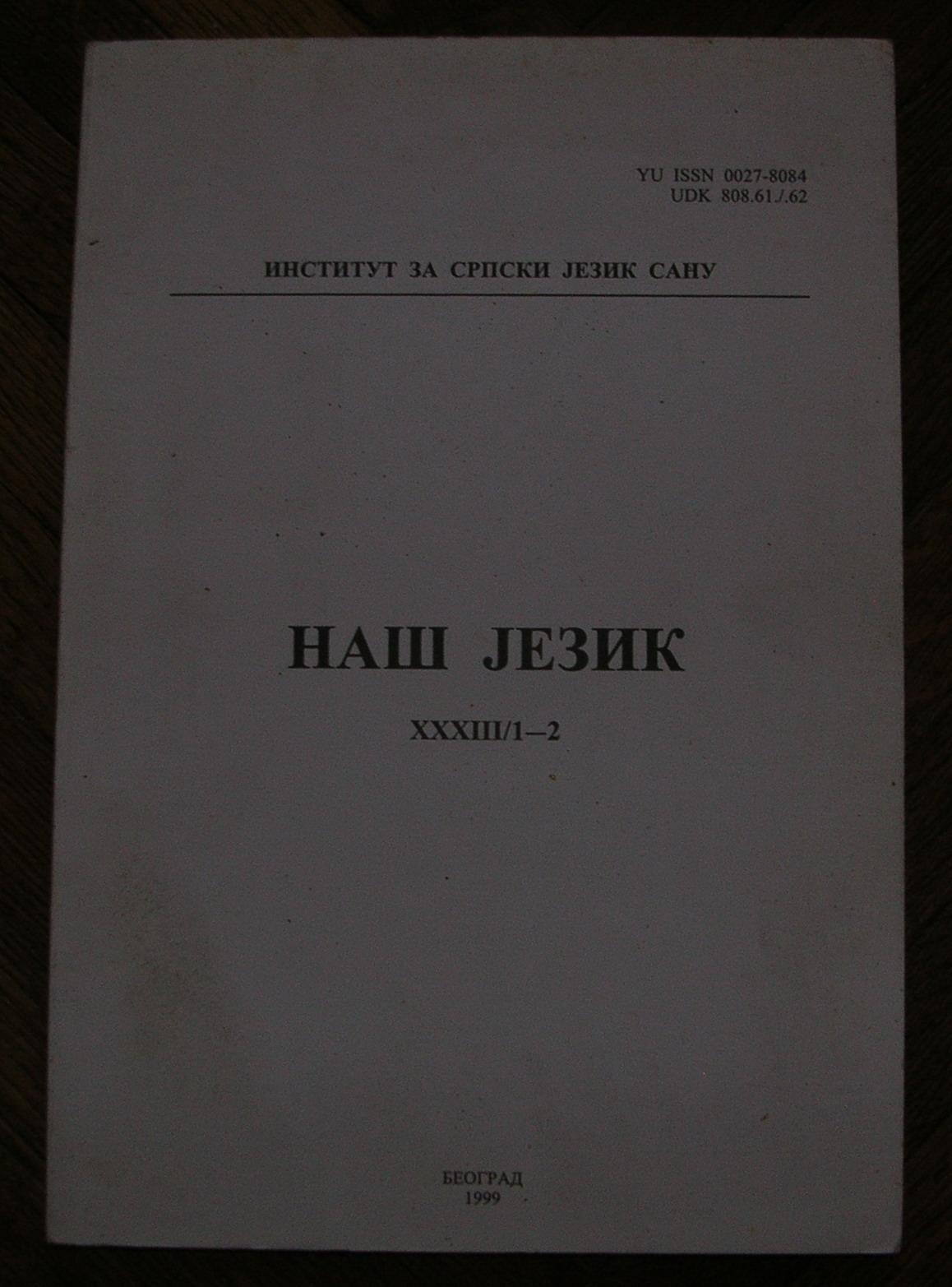 Naš jezik XXXIII/1-2 Institut za srpski jezik SANU