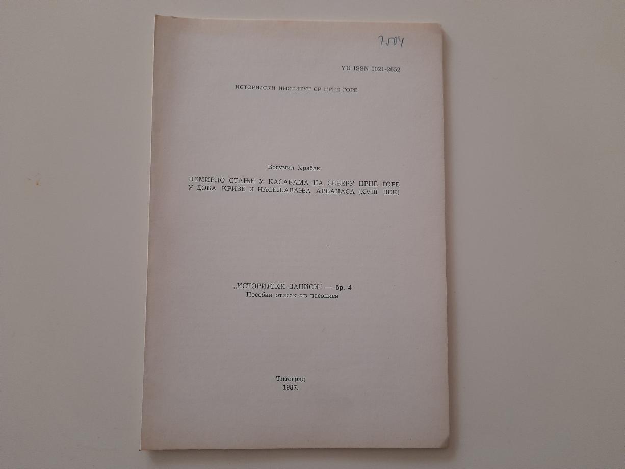 Nemirno stanje u kasabama na severu Crne Gore u doba krize i naseljavanja arbanasa (XVIII vek)