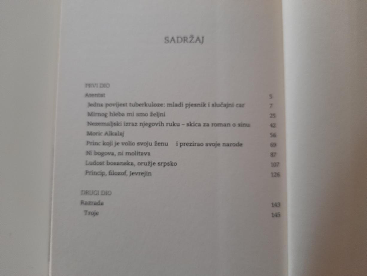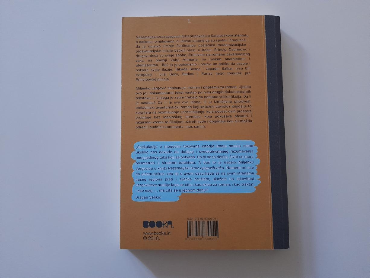 Nezemaljski izraz njegovih ruku pripoveda o Sarajevskom atentatu, o našima i o njihovima, a ustvari o tome da su i jedni i drugi naši, i da je ubistvo Franje Ferdinanda posledica modernizacijske i prosvetiteljske misije bečkih vlasti u Bosni. Princip, Čabrinović i drugovi deca su svoje epohe, školovani na romanu devetnaestog veka, na poeziji Volta Vitmana, na ruskim anarhistima i atentatorima… Beč ih je opismenio i pružio im priliku da osvoje i ostvare svoje iluzije. Nikada Bosna i zapadni Balkan nisu bili evropskiji i bliži Beču, Berlinu i Parizu nego trenutak pre Principovog pucnja.