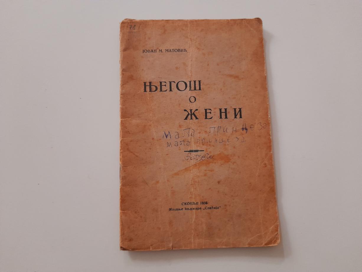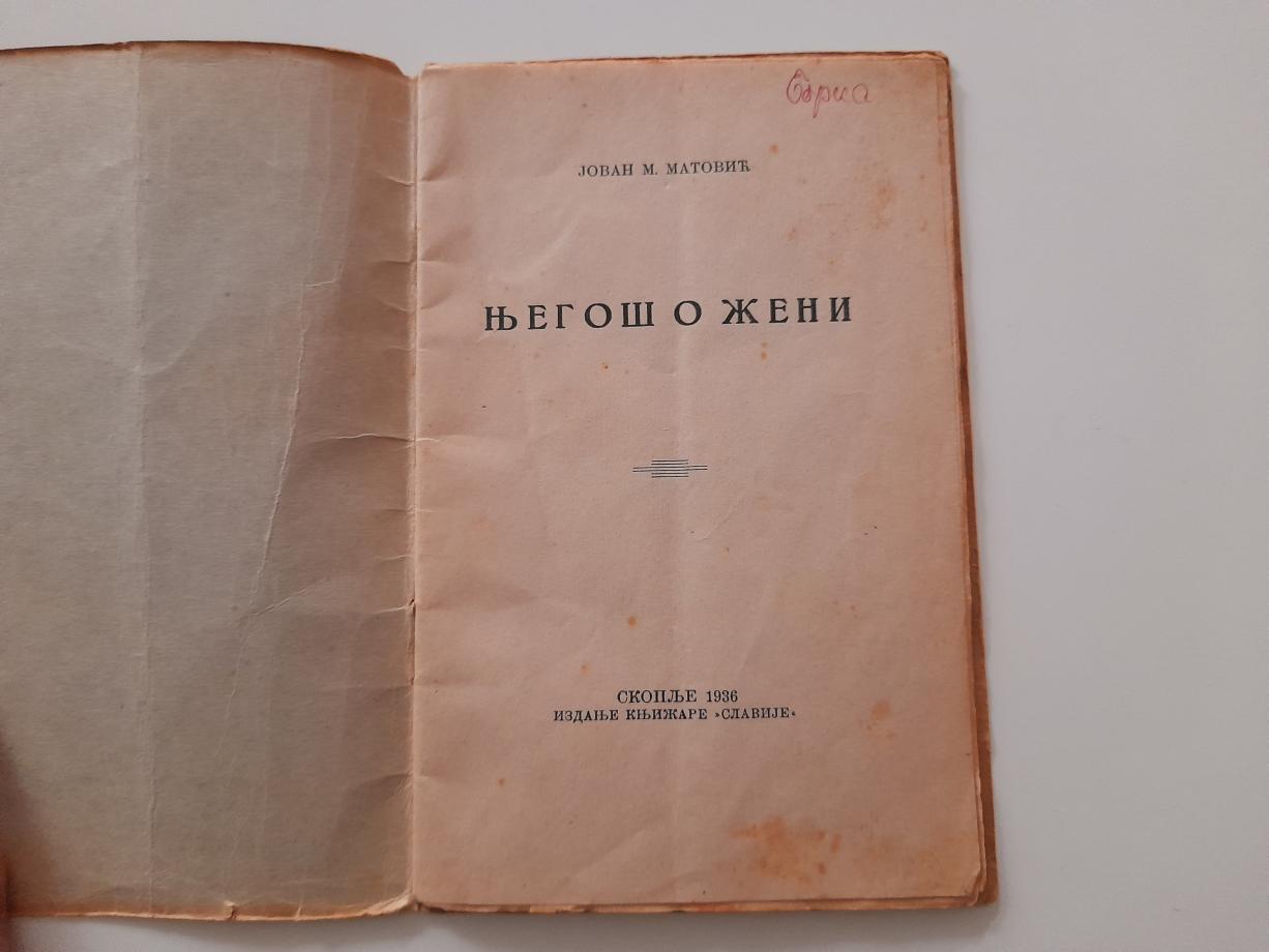`Njegoš o ženi` je studija autora Jovana M. Matovića objavljena 1936. godine u Skoplju, u izdanju knjižare `Slavija`. Knjiga analizira prikaz i ulogu žene u djelima Petra II Petrovića Njegoša, i predstavlja retko antikvarno izdanje, često bez detaljnih javno dostupnih citata o samom sadržaju analiza.