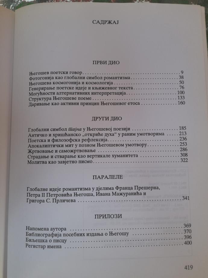 „Ponikao u narativnoj kulturi, u kojoj se neguje kult riječi, obrazovan na klasicističkoj retorici, a književno formiran u okrilju narodnog stvaralaštva i ranog, nerazvijenog romantizma ili protoromantizma, Petar II Petrović Njegoš (1813-1851) od prvih, početničkih pokušaja pa do kraja dvodecenijskog bavljenja književnim stvaralaštvom kontinuirano pokazuje brižljiv odnos prema svakoj vrsti govora, a osobito prema poetskom govoru, koji smatra suštinskim obilkom egzistencije...“
