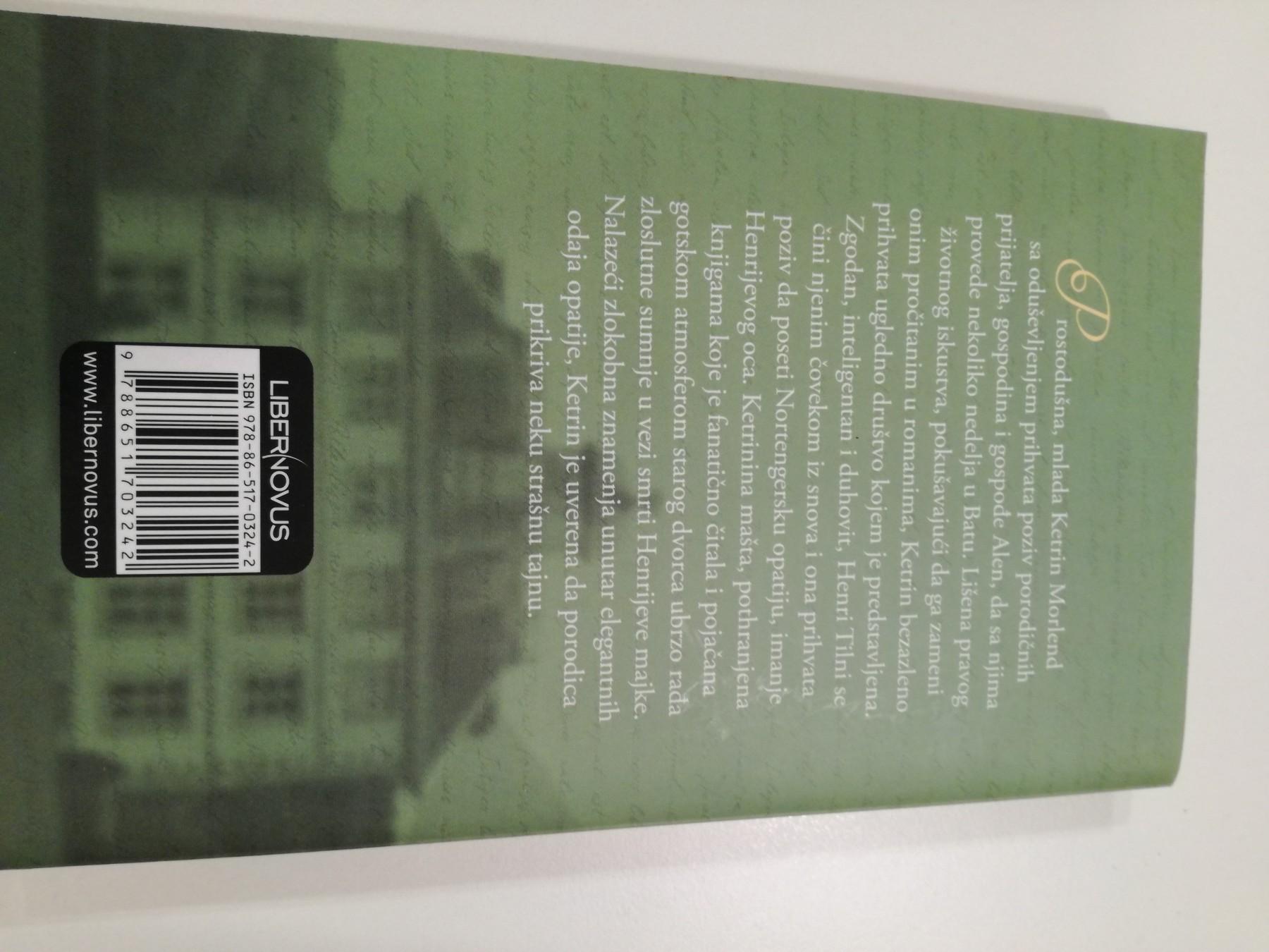 Tokom šestonedeljnog boravka u Batu praveći drutvo porodičnim prijateljima, mlada i naivna sedamnaestogodišnja Katarina Morland po prvi put biva predstavljena uglednom društvu. Oduševljena je svojim novim prijateljima: mladom, koketnom Izabelom koja deli Katarininu ljubav prema gotskim romanima i prefinjenim Henrijem i Eleonorom Tilni, koji je pozivaju da poseti misterioznu kuću njihovog oca, Nortengersku opatiju. Našavši se u kući Katarinu počinju da ispunjavaju strašne sumnje vezane za misteriju oko smrti Henrijeve majke. Da li porodica skriva stravičnu tajnu? Da li može verovati Henriju?