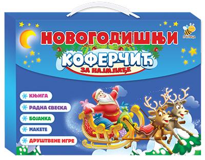 ’’Novogodišnji koferčić za najmlađe – interaktivni i kreativni komplet inspirisan Novom godinom i zimom. U funkcionalnom, višenamenskom i moderno dizajniranom koferčiću nalaze se: Zimska pesmarica čika Jove Zmaja, Novogodišnja bojanka i Zimska knjiga razonode sa čak sedam kreativnih dodataka (maska Deda Mraza, kartonski model jelke, kartonski model zimske kućice, kartonski model novogodišnjeg ukrasa, slagalica sa zimskim motivima i memorijska i društvena igra inspirisane novogodišnjim praznicima).’’
