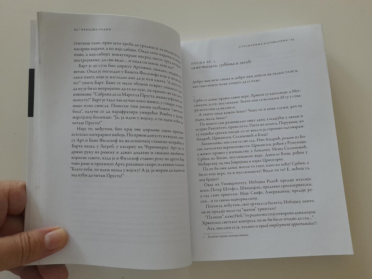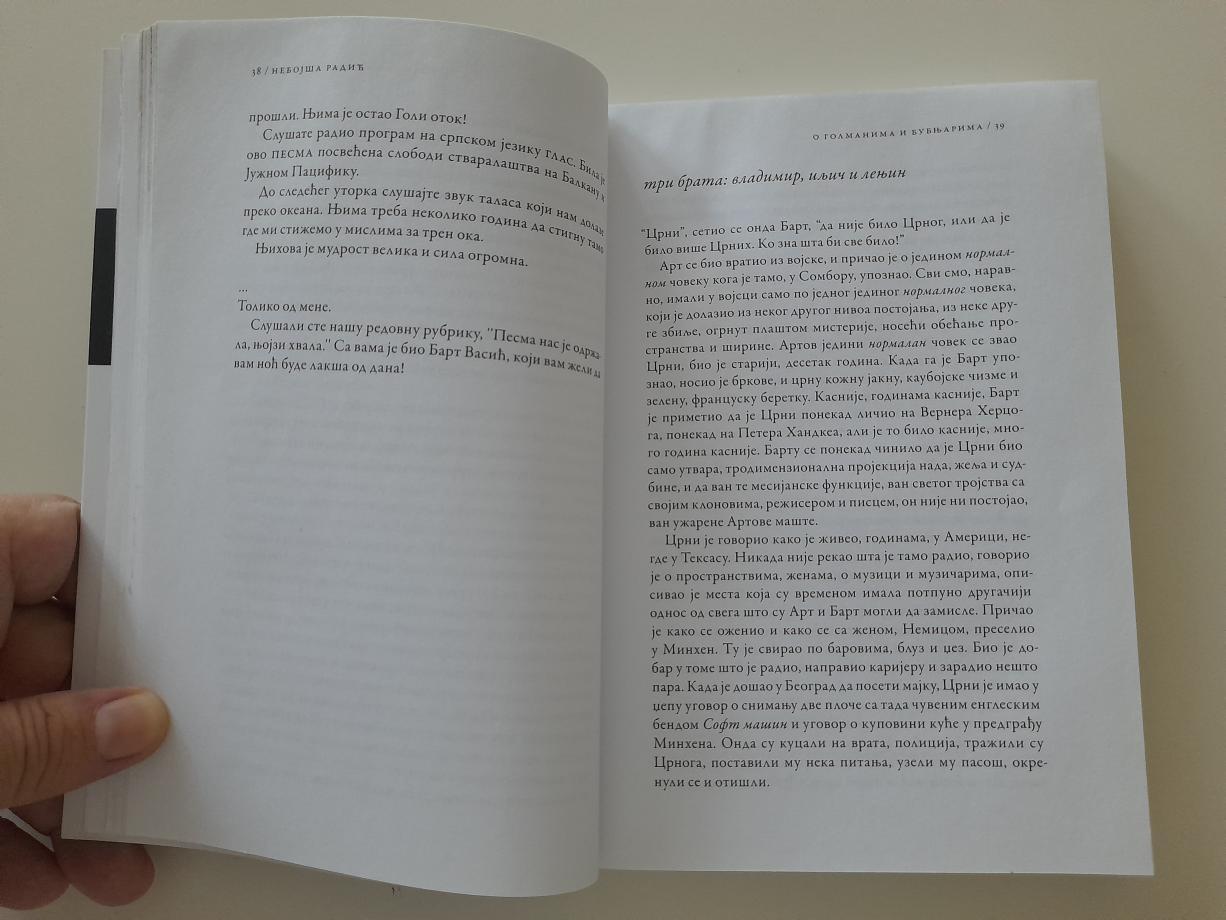 U ovom romanu zablistali su ljudi sa margina, različitih rasa, nacija i ubeđenja, sa različitih prostora i kultura, koji svedoče o akruelnom svetu i Srbima u njemu, kao nikada pre u srpskoj književnosti. Nonšalantni, blagi ironični otkloni od aktuelnih zbivanja i samo ponegde, i sa merom, sarkastični, romanu daju specifičan narativan tok, lake čitljivosti i potrebne duhovitosti, ispod koje je čudesan vrtlog izuzetno ozbiljnih tema i problema savremenog sveta i Srba u njemu.
