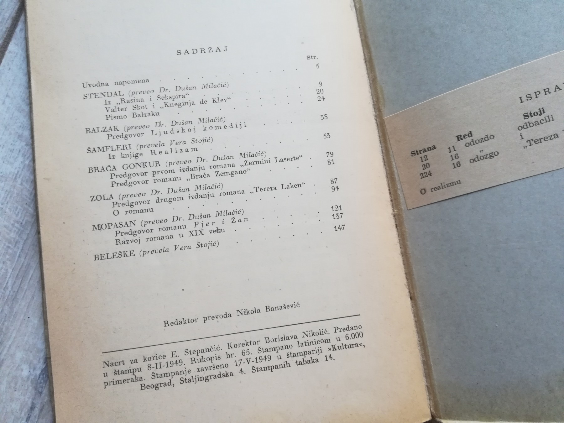 O realizmu - članci Stendala, Balzaka, Šamfleria,braće Gonkur, Zole, Mopasana