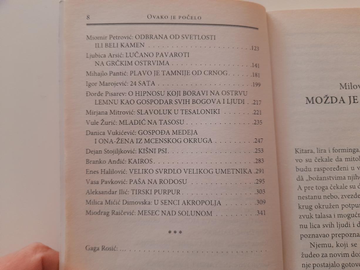 Inspirisani kolevkom civilizacije koja nam je tu, nadohvat ruke, najznačajniji savremeni srpski pripovedači prerušeni u turiste, operske pevače, zavodnike, mitotvorce i Vizantince ispisuju nadahnute i sižejno raznovrsne priče. Njihov blistavi omaž Grčkoj samo je mali deo onoga što joj zapravo svi mi dugujemo.