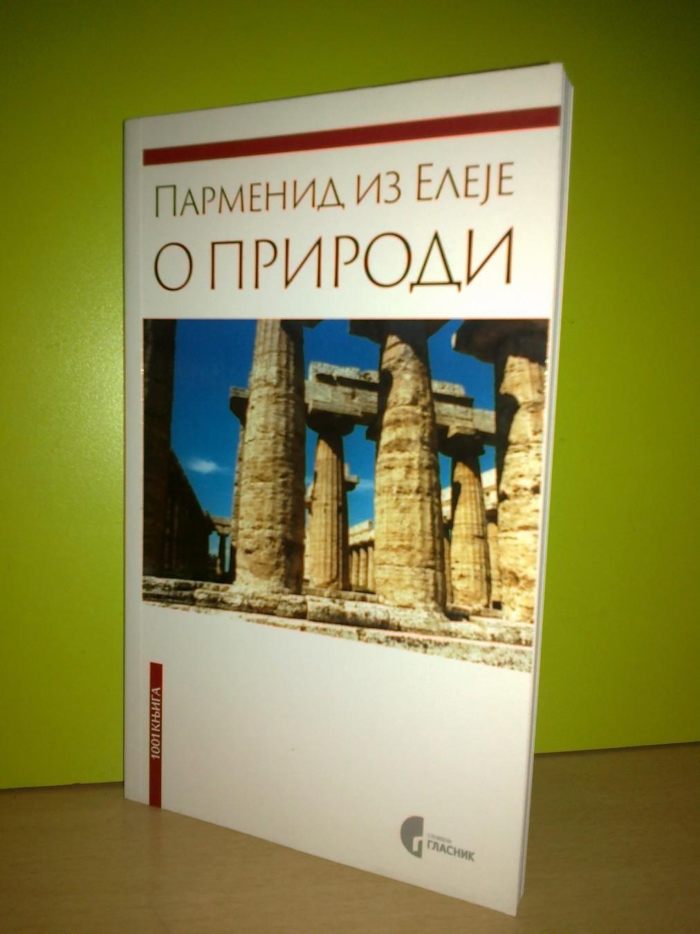 Praćena instruktivnim filološkim i filozofskim napomenama, kao i ličnim refleksijama, uz ostrašćeni višegodišnji priređivački rad, u pouzdanom prevodu stiže nam čuvena poema Parmenida iz Eleje, uz Zenona, najznačajnijeg mislioca elejske škole, bez koje bi antička filozofija bila nezamisliva. To su jedini sačuvani fragmenti njegovog dela u kojima ćemo ići putem od tame do svetlosti, uz pomoć mišljenja, onako kako se ide od opažanja do logosa, posredstvom istine.