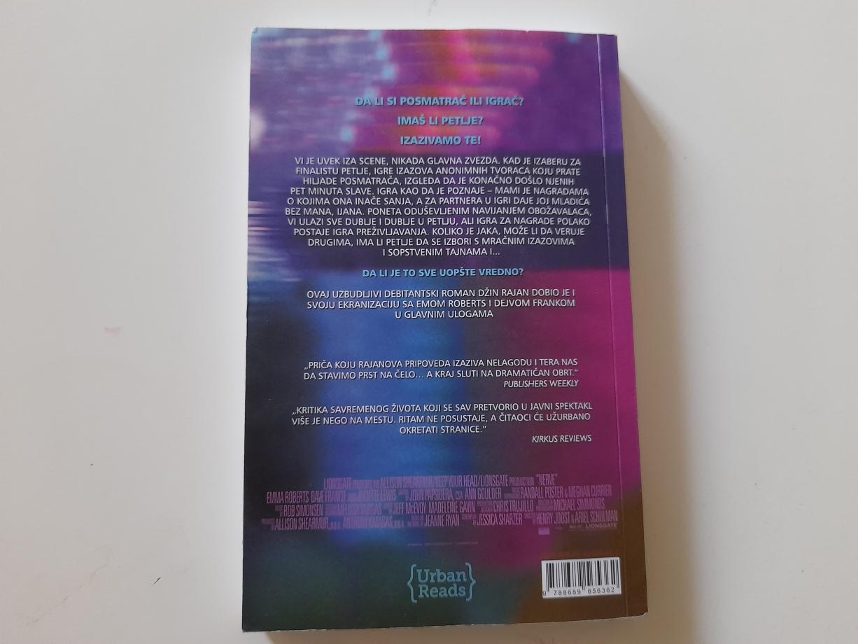 Ovaj uzbudljivi debitantski roman Džin Rajan dobio je i svoju ekranizaciju sa Emom Roberts i Dejvom Frankom u glavnim ulogama (Nerve, jul 2016).