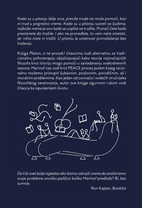 Platon, a ne prozak! nudi revolucionaran pristup mentalnom zdravlju, gde se umesto klasične psihoterapije i lekova, koriste filozofske teorije za razumevanje i prevazilaženje svakodnevnih izazova.