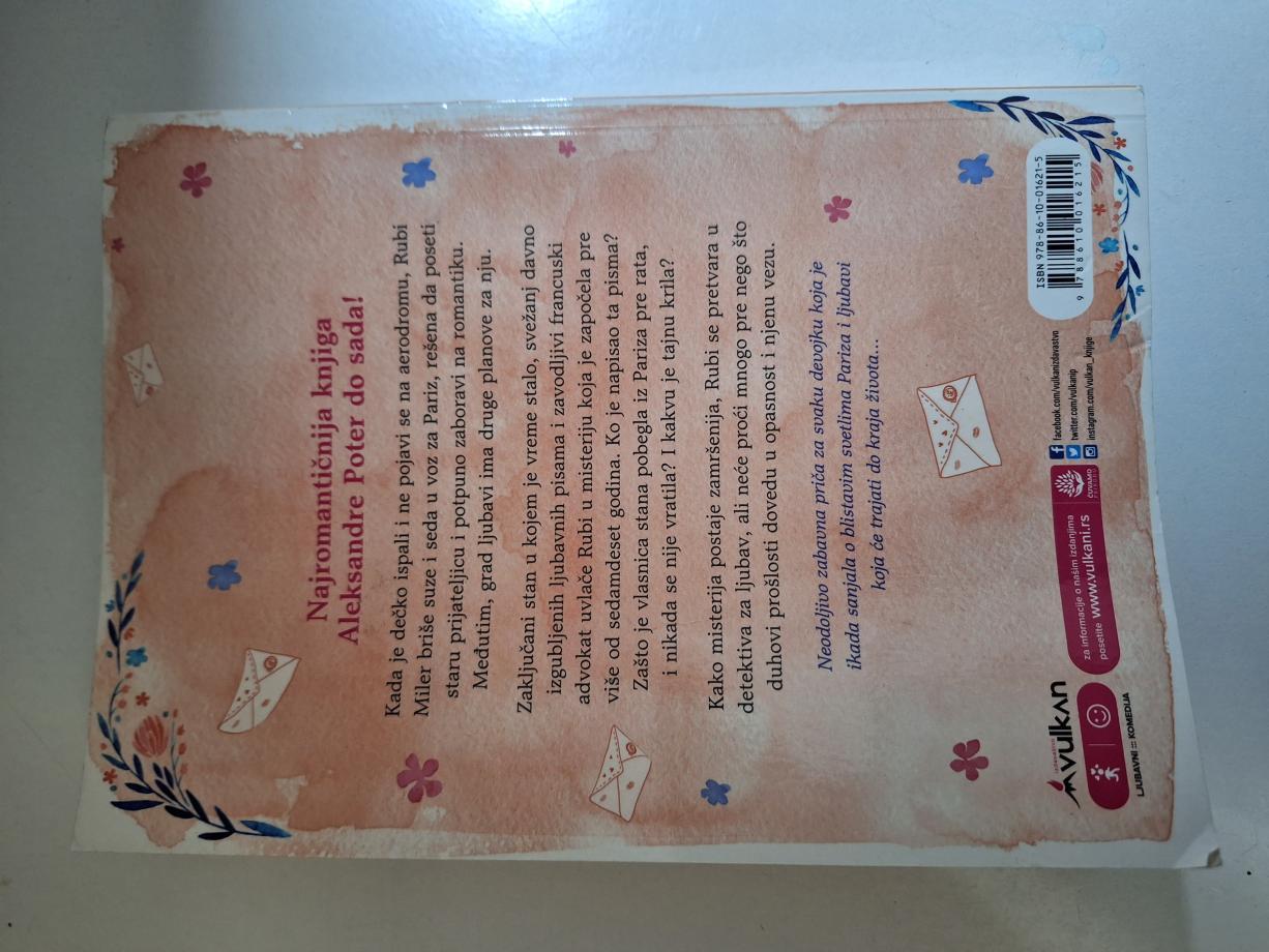 Najromantičnija knjiga Aleksandre Poter do sada! Kada je dečko ispali i ne pojavi se na aerodromu, Rubi Miler briše suze i seda u voz za Pariz, rešena da poseti staru prijateljicu i potpuno zaboravi na romantiku. Međutim, grad ljubavi ima druge planove za nju. Zaključani stan u kojem je vreme stalo, svežanj davno izgubljenih ljubavnih pisama i zavodljivi francuski advokat uvlače Rubi u misteriju koja je započela pre više od sedamdeset godina. Ko je napisao ta pisma? Zašto je vlasnica stana pobegla iz Pariza pre rata, i nikada se nije vratila? I kakvu je tajnu krila? Kako misterija postaje zamršenija, Rubi se pretvara u detektiva za ljubav, ali neće proći mnogo pre nego što duhovi prošlosti dovedu u opasnost i njenu vezu. Neodoljivo zabavna priča za svaku devojku koja je ikada sanjala o blistavim svetlima Pariza i ljubavi koja će trajati do kraja života...