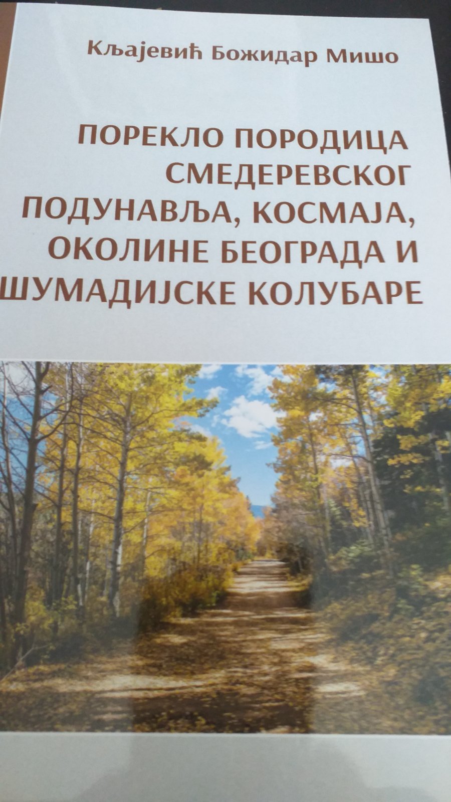 Knjiga „Poreklo porodica smederevskog Podunavlja, Kosmaja, okoline Beograda i šumadijske Kolubare” autora Božidara Kljajevića predstavlja obimno i temeljno istraživanje porodičnog porekla i genealoških veza stanovništva ovog dela Srbije. Kroz detaljnu analizu istorijskih izvora, narodnih predanja i arhivskih dokumenata, autor osvetljava složene procese migracija, naseljavanja i društvenih promena koje su oblikovale identitet i strukturu porodica sa ovih prostora.