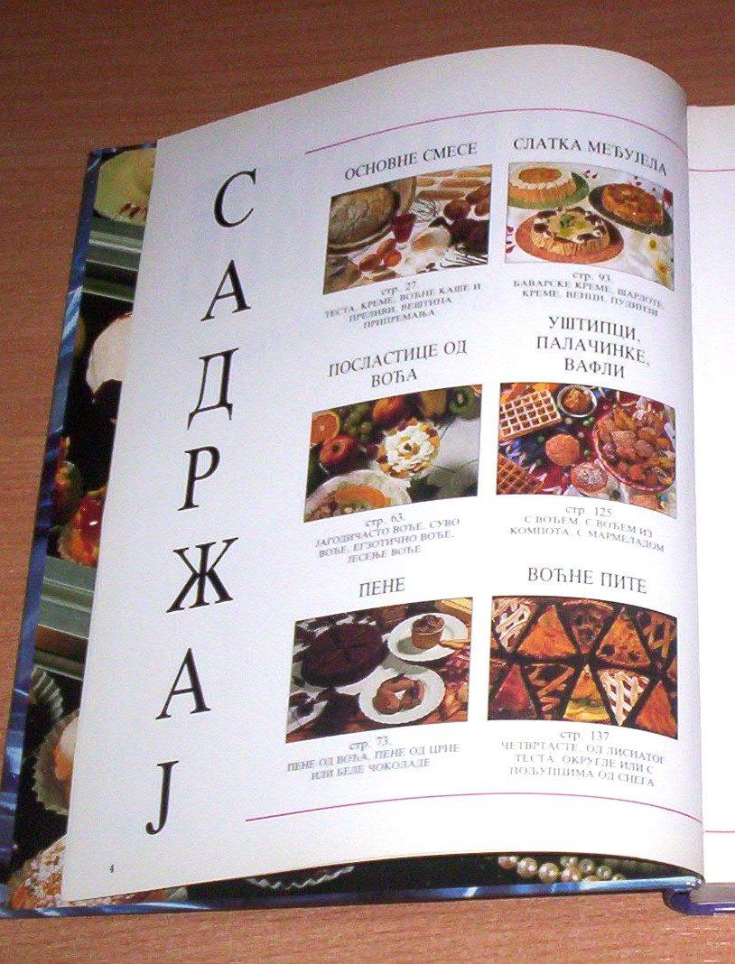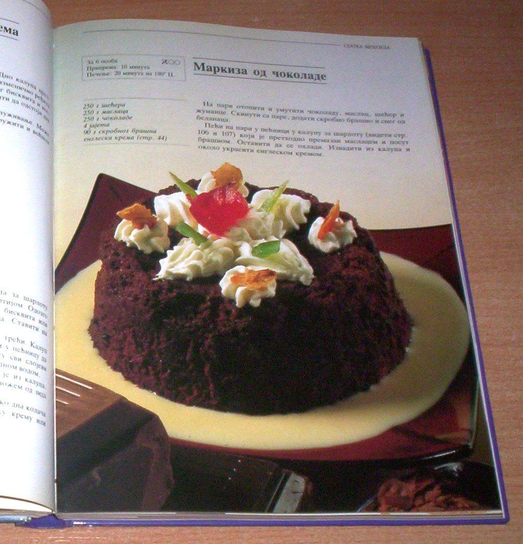 Gi Dezdje: POSLASTICE – TAJNA NJIHOVA USPEHA, TKPP Evro, Beograd, 1991, format 20 x 26 cm, strana 251, tvrde korice, povez šivenjem, ilustrovano fotografijama u koloru, ima ISBN 86-7627-008-2. Prevod sa francuskog jezika profesora poslastičarstva na Liceju za hotelijerstvo u Štrasburu. Sadržaj: uputstva za izradu poslastica, pribor, važniji sastojci smesa za glaziranje, prelivi, sastavni delovi ukrasa, osnovne smese, kreme, veštine kuvanja šećera, poslastice od voća, pene, slatka međujela, uštipci, palačinke, vafli, voćne pite, torte i kolači, sitni kolači, ledene poslastice, čajni kolačići i bomboni, ukrasi, tnjiri za desert. Gotovo kao nova, malo korišćena, čistih stranica i bez podvlačenja redova. Ne korespondiram SMS porukama. Ne prodajem knjige kupcima sa Kosova i ne šaljem u inostranstvo. Poštarinu plaća kupac. Šaljem samo kao preporučenu tiskovinu.