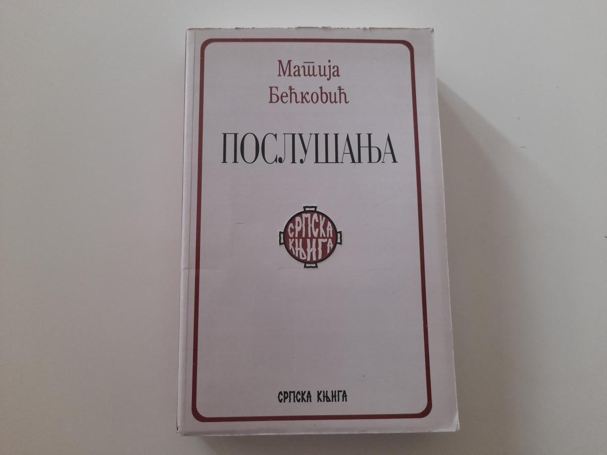 `Poslušanja` čine eseji, besede, komentari, predgovori, nekrolozi kroz koje se ogledaju Bećkovićevi pesnički, filozofski i politički stavovi.