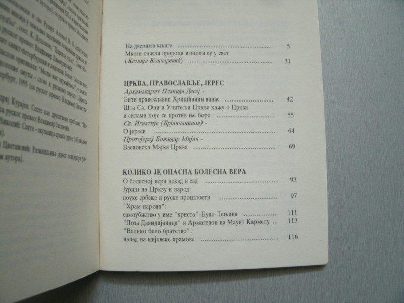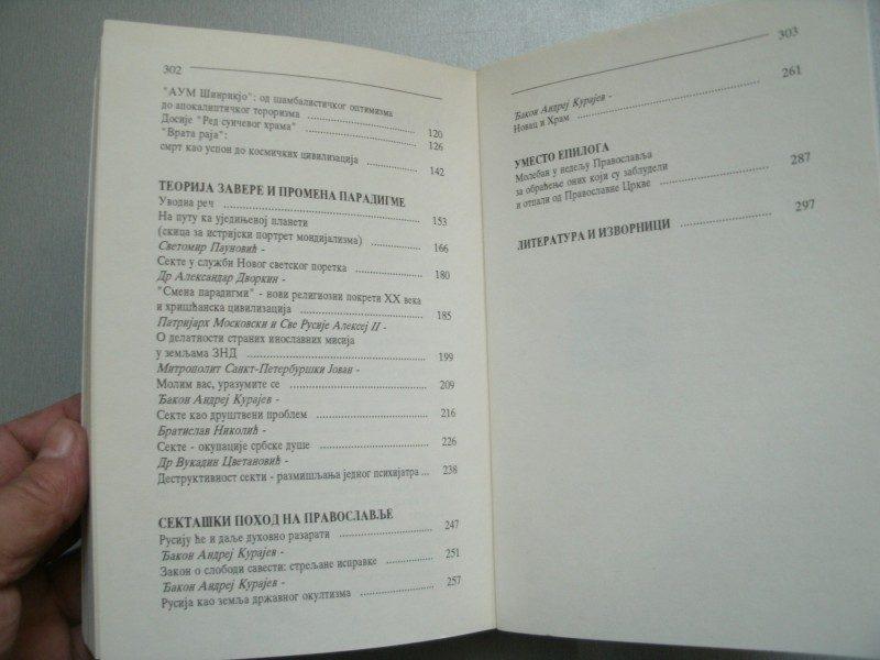 Књига је настала у доба великих искушења нашег народа који, што сопственом кривицом, а што по вољи моћника овога света, страда више но икад у својој историји. Поред рата, економске беде, распада личног и друштвеног морала, пораста криминала, политичких зађевица и раскола, појавило се зло горе од свих зала, зло које насрће на дух србског народа – зло лажних вера и опасних духовних заблуда. На Светом Архијерејском Сабору Србске Православне Цркве, који је отпочео 22. маја 1994. у Пећкој патријаршији, а завршио се 2. јуна те године у згради Патријаршиеј у Београду, србски архијереји су јавности ставили до знања да нам је “споља” - из истог света из кога су дошле санкције и бомбе - дошла и незвана војска проповедника разних секти, парарелигијских и пседорелигијских покрета, оклутних учења, магијских обреда, сујеверја, враџбина, све до ужасне теорије и праксе сатаниста. Посреди је прави духовни, и не само духовни, терор над нама, и налазимо се, без претеривања, пред опасношћу духовног геноцида ако се не супроставимо као слободно крштени народ...