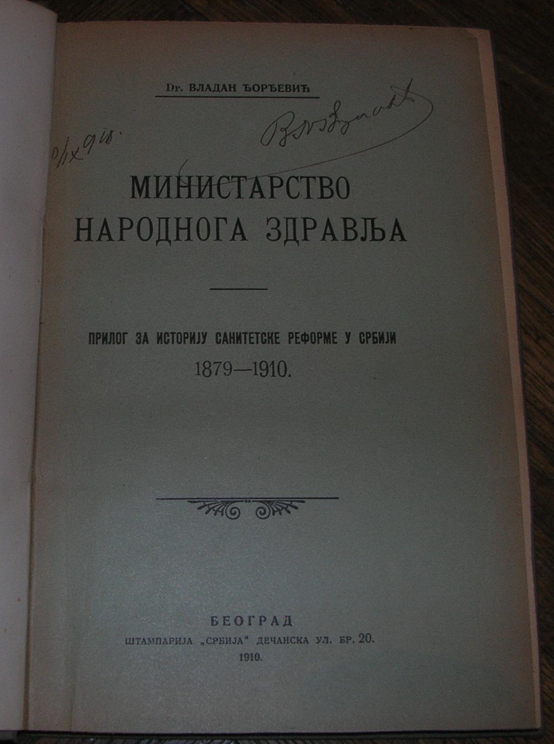 Prilog za istoriju sanitetske reforme u Srbiji 1879 - 1910