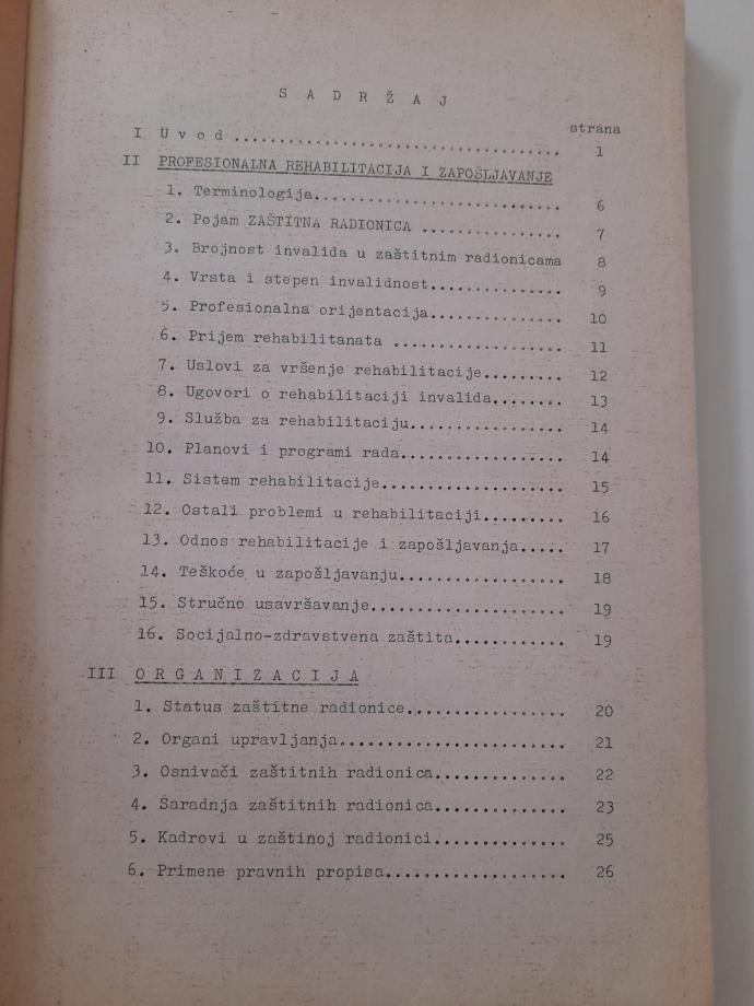 Profesionalna rehabilitacija invalida putem zaštitnih radionica - materijal za konferenciju rađen na osnovu iskustva u radu zaštitnih radionica Saveza gluvih Jugoslavije