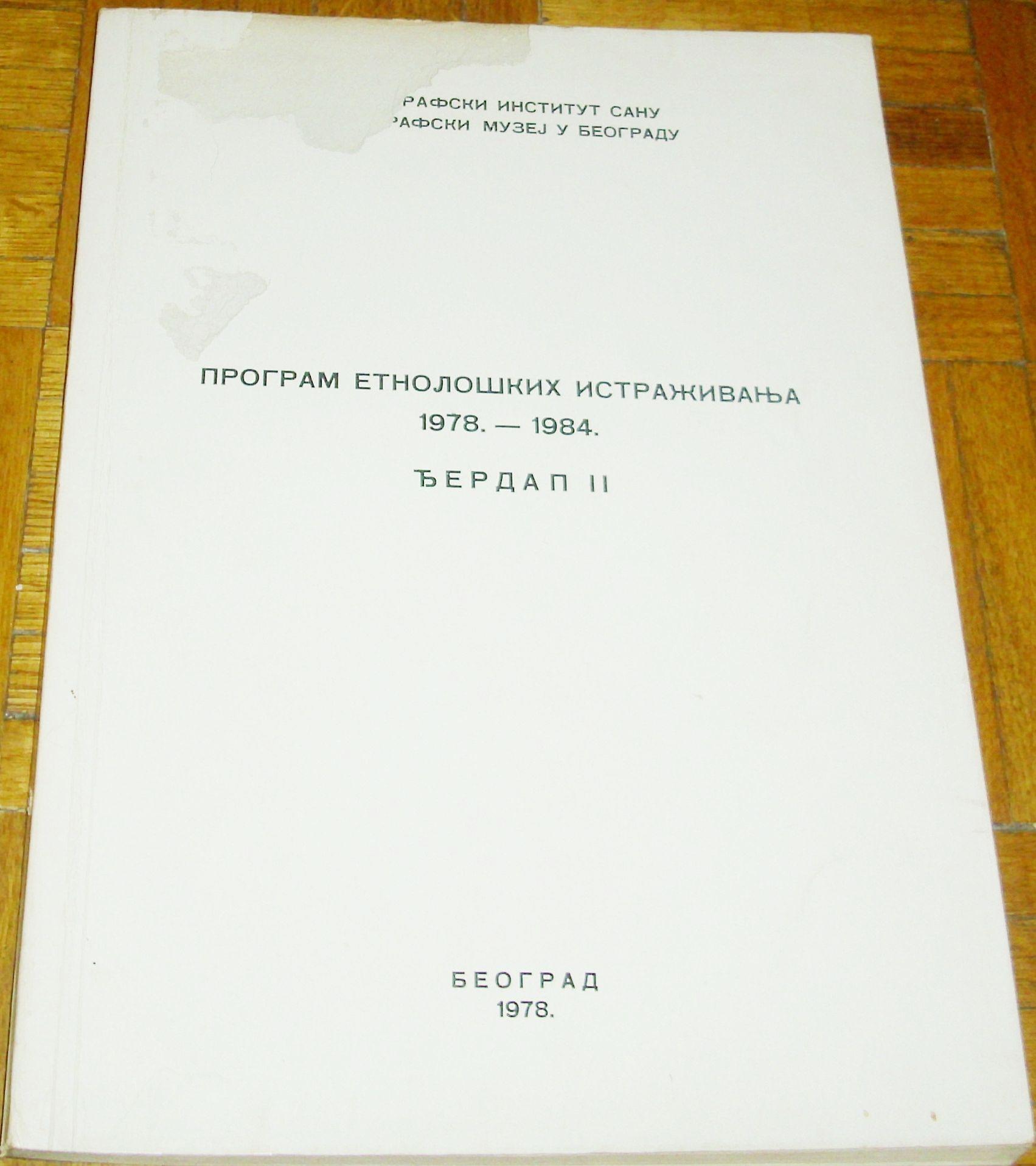 PROGRAM ETNOLOŠKIH ISTRAŽIVANJA 1978. - 1984. : ĐERDAP II