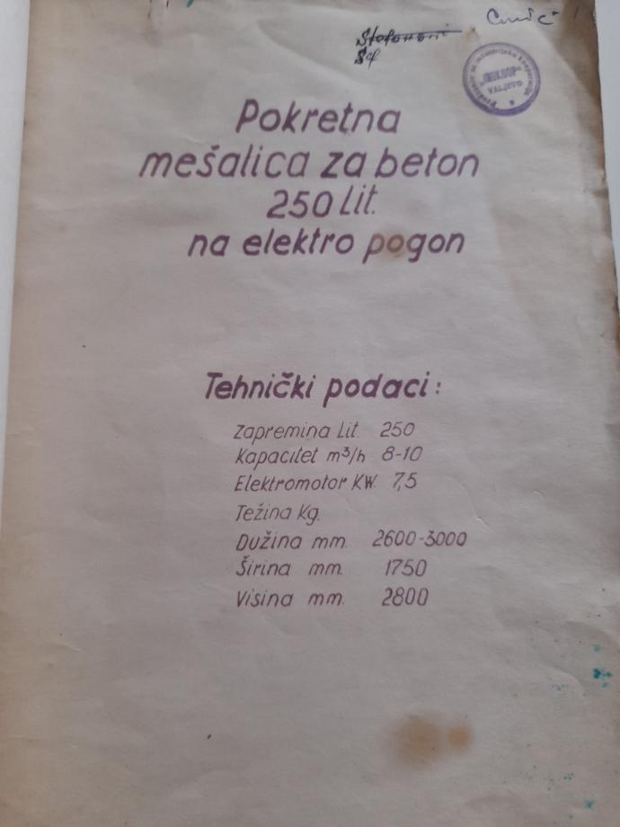 Protivstrujna mešalica za beton - Tehničko uputstvo