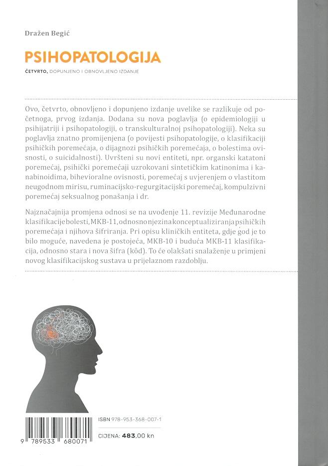 Psihopatologija je temelj psihijatrije i značajan dio kliničke psihologije, pa je tako ovaj udžbenik namijenjen i studentima medicine i studentima psihologije, a može poslužiti i u specijalističkoj i poslijediplomskoj nastavi za medicinare i psihologe, te svima koji rade ili će raditi u području mentalnoga zdravlja.