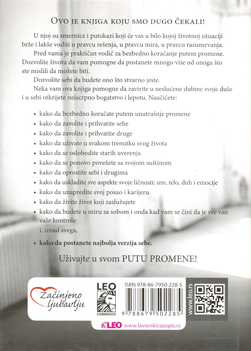 Praktičan vodič za bezbedno koračanje putem promene, sa smernicama i putokazima za bilo koju životnu situaciju i brže i lakše koračanje ka rečenju, u pravcu mira i razumevanja.