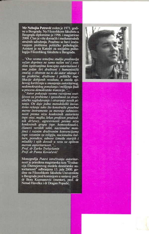 Autor kritički razmatra različite pokušaje koncipiranja autoritarnosti kao psihološke dispozicije, kao i teorijske i metodološke probleme vezane za te pokušaje, sa posebnim osvrtom na empirijsku proveru modela Boba Altemejera.
